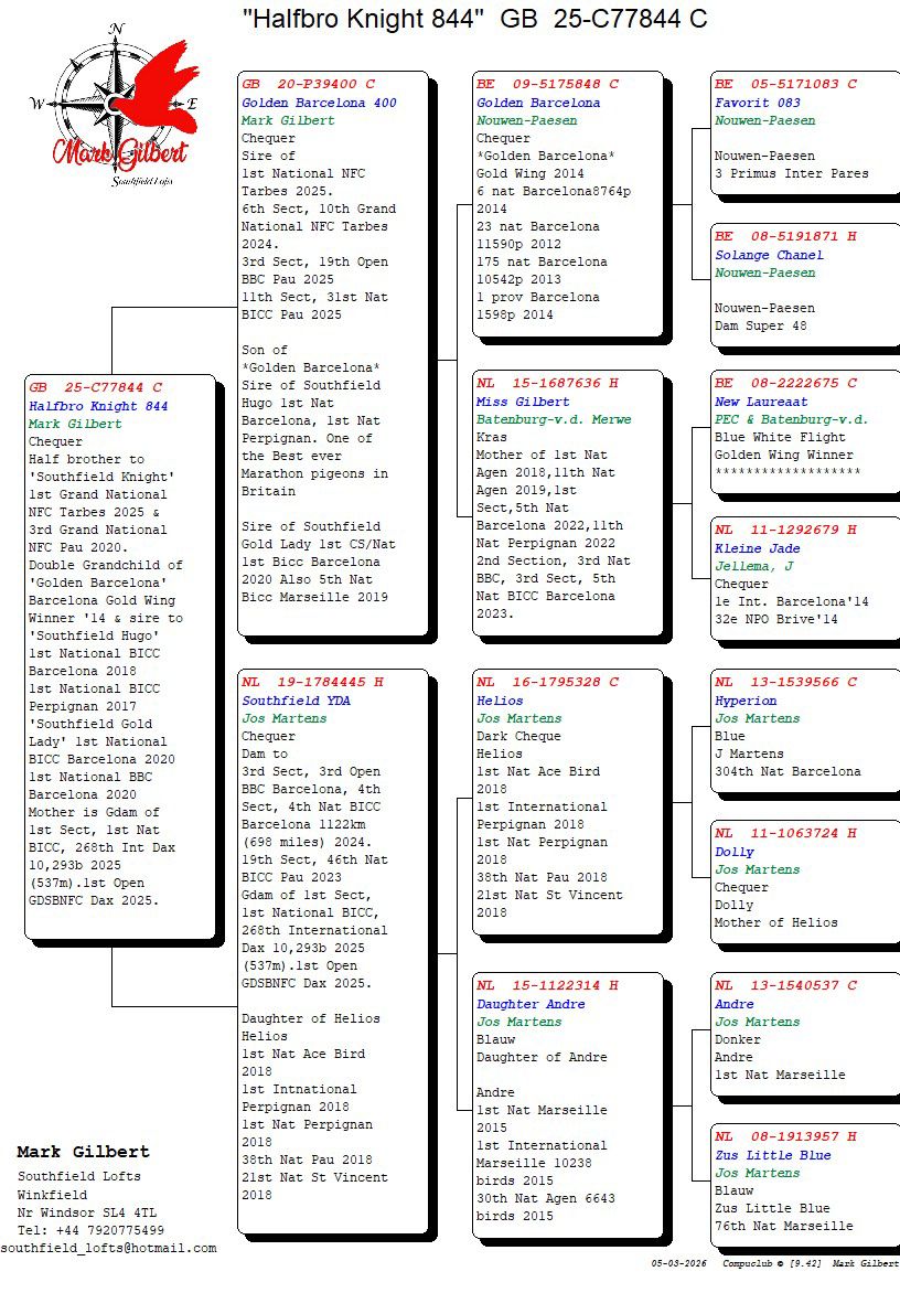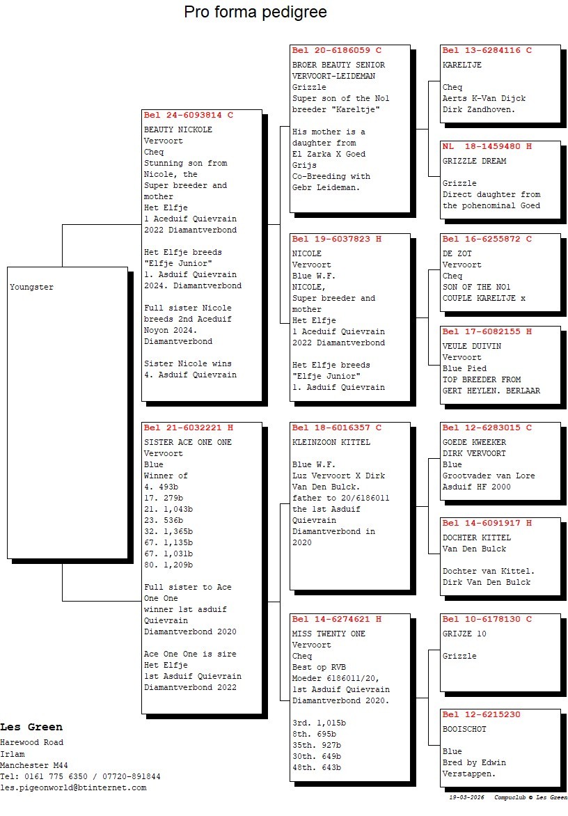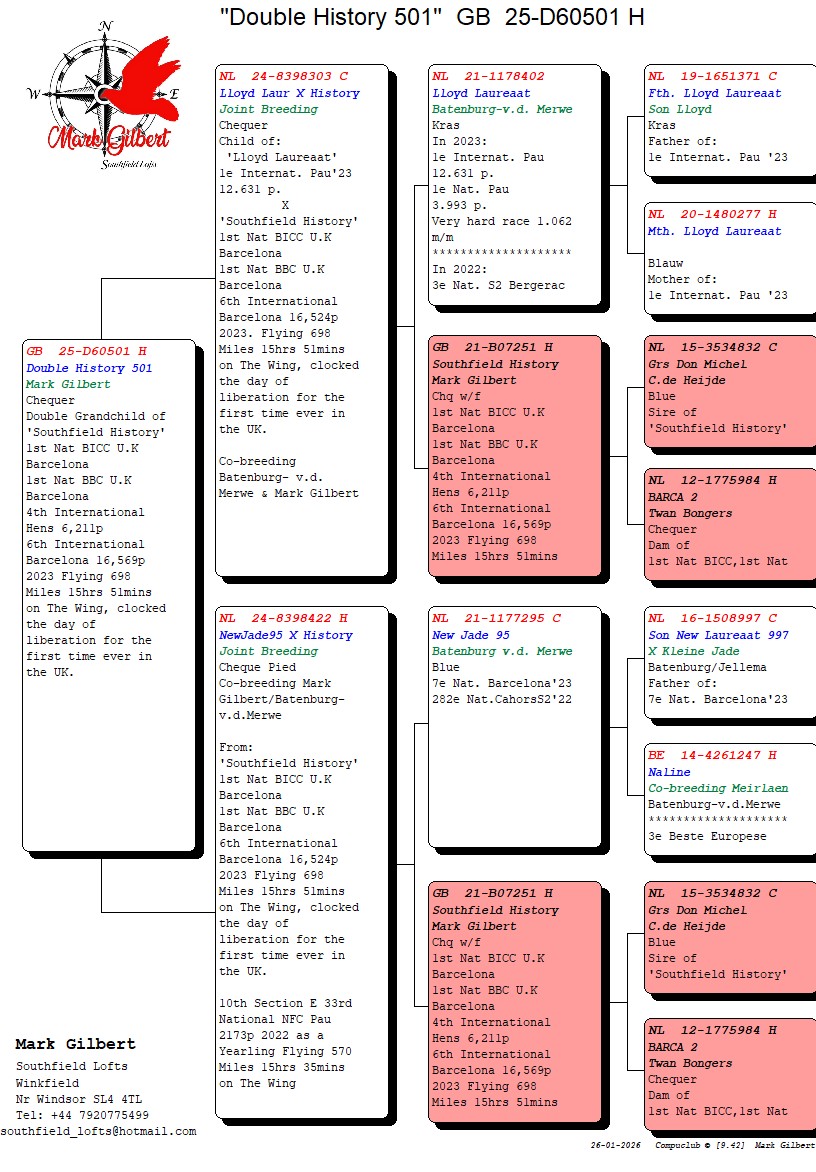 Les Green's achievements in 'the pigeon game' are unbelievable. Les is mostly known for his outstanding racing and auctioneering skills. He has sold top quality pigeons worldwide for many years now and he continuous to do so. His relation- and companionship with other top flyers and breeders, make it possible for him to get the best pigeons available out there.