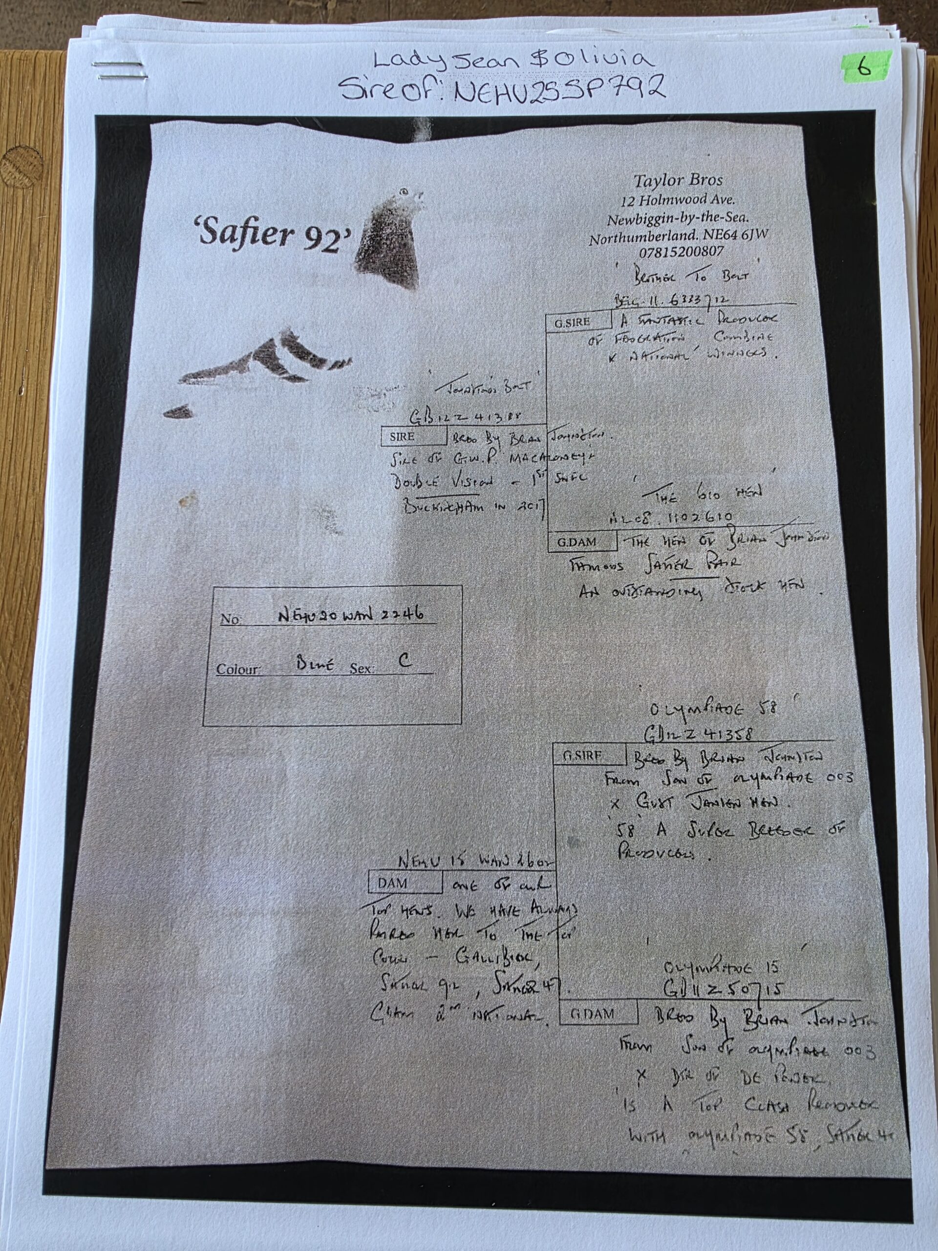 The mother to 2246 is 15-WAN-260 a daughter of the top hen, Taylor brothers always paired her to the very best cocks. She has bred winners including being grandmother to 2nd national.