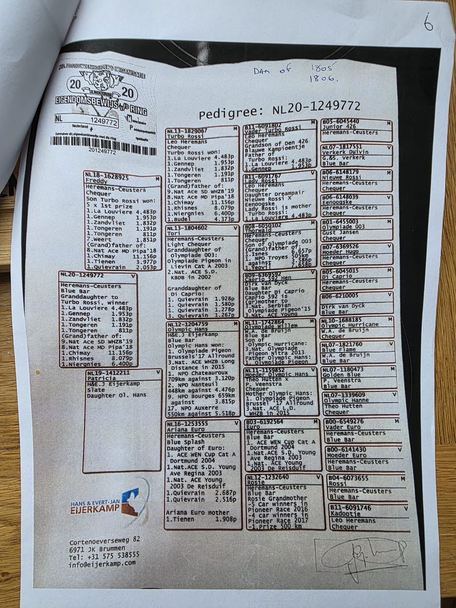 NEHE 25 SP-792 “Woody” winner of 6th ACE PIGEON AUTUMN CHALLENGE RACE