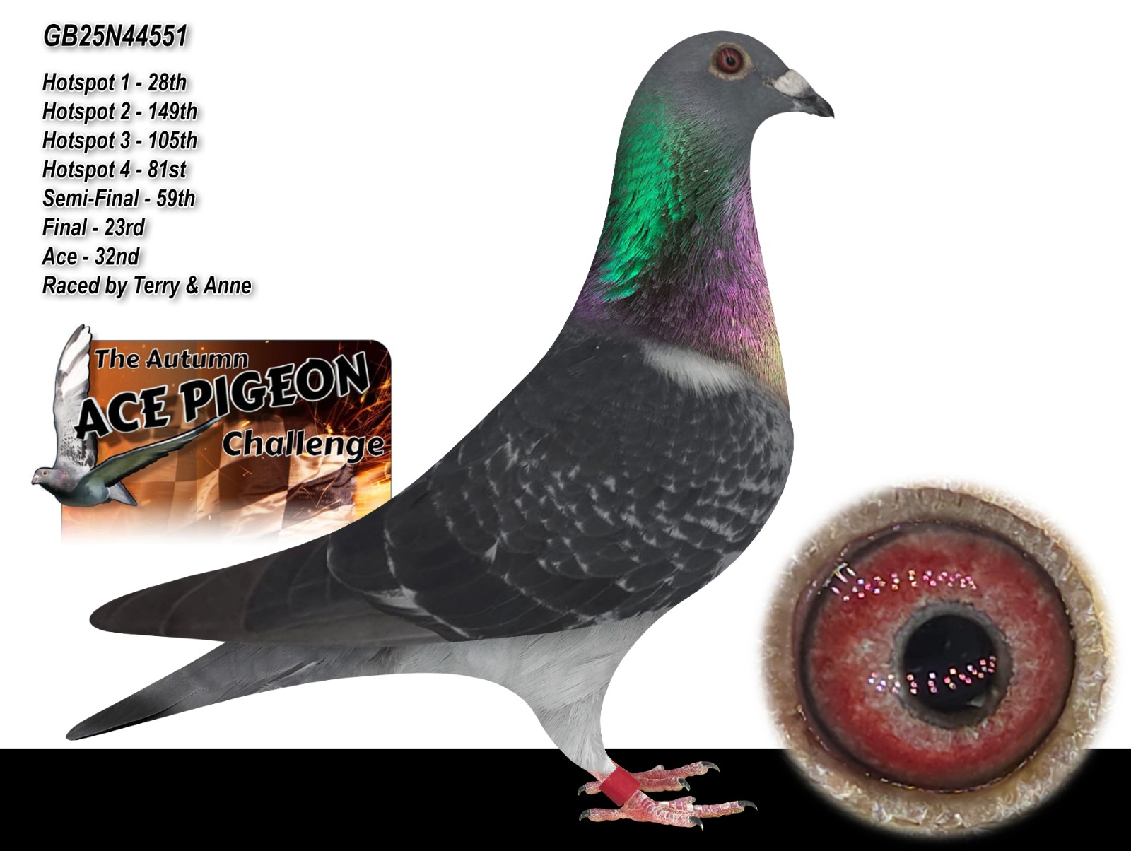 GB 25 N44551 Dark Chequer “Luscombe 551” winner of 32nd ACE PIGEON AUTUMN