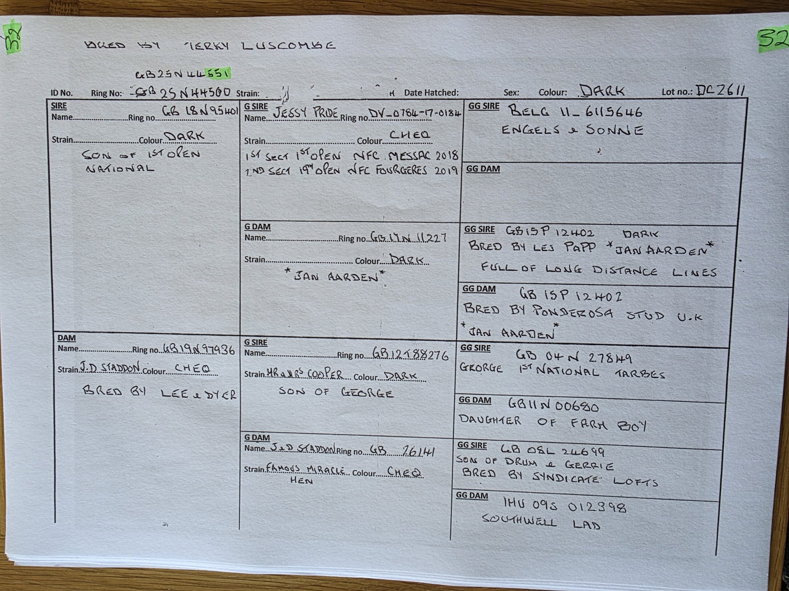 The mother to 95401 is a Jan Aarden from a Les Papp cock X a Ponderosa UK Hen.