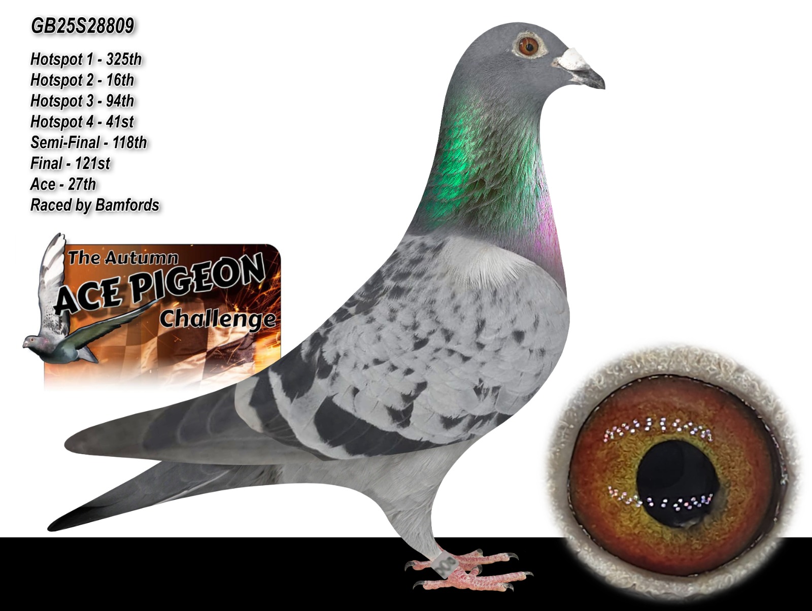 GB 25 S28809 “Top Flight 09” winner of 27th ACE PIGEON AUTUMN CHALLENGE RACE for ‘Bamfords Top Flight Syndicate’