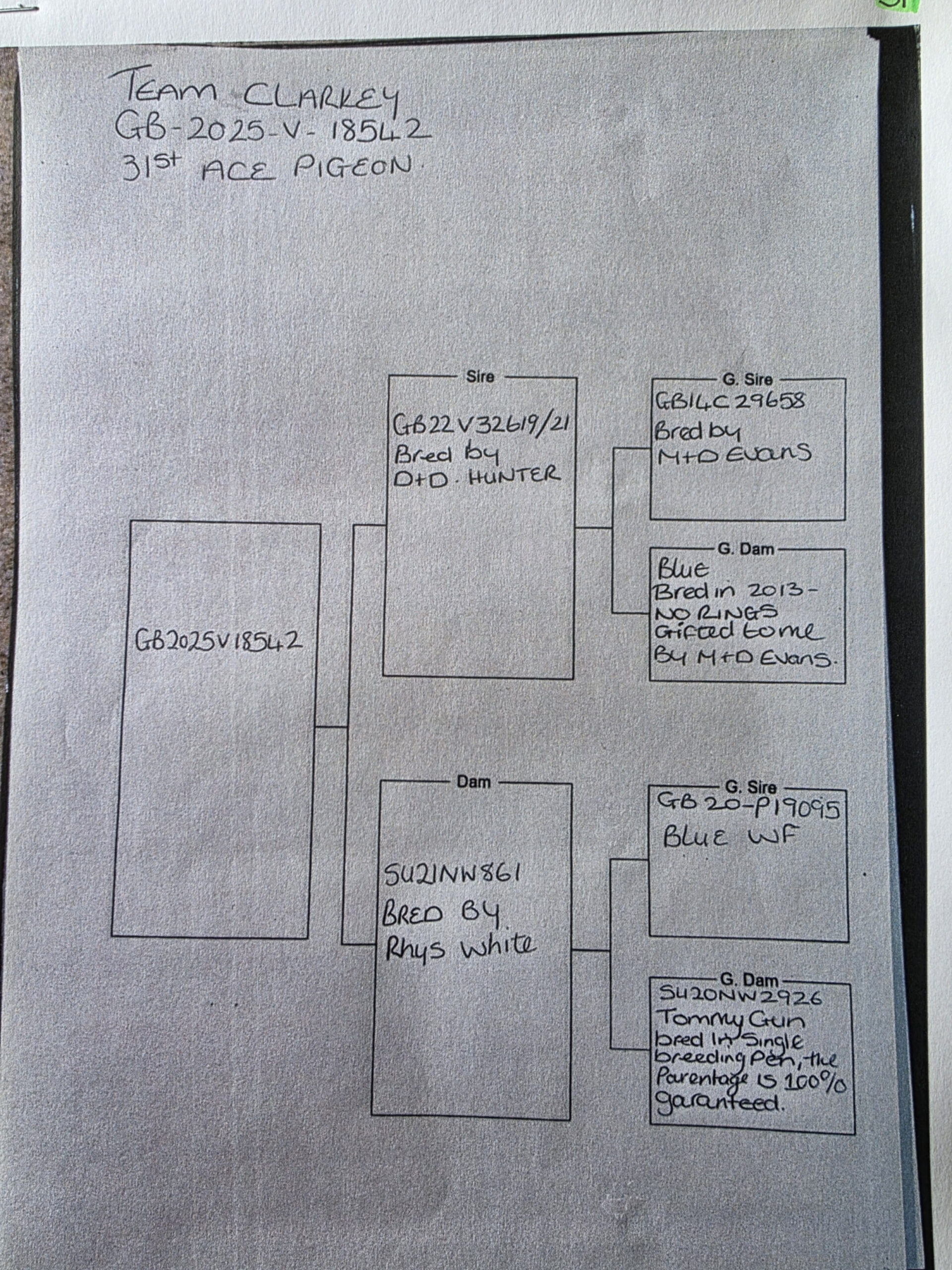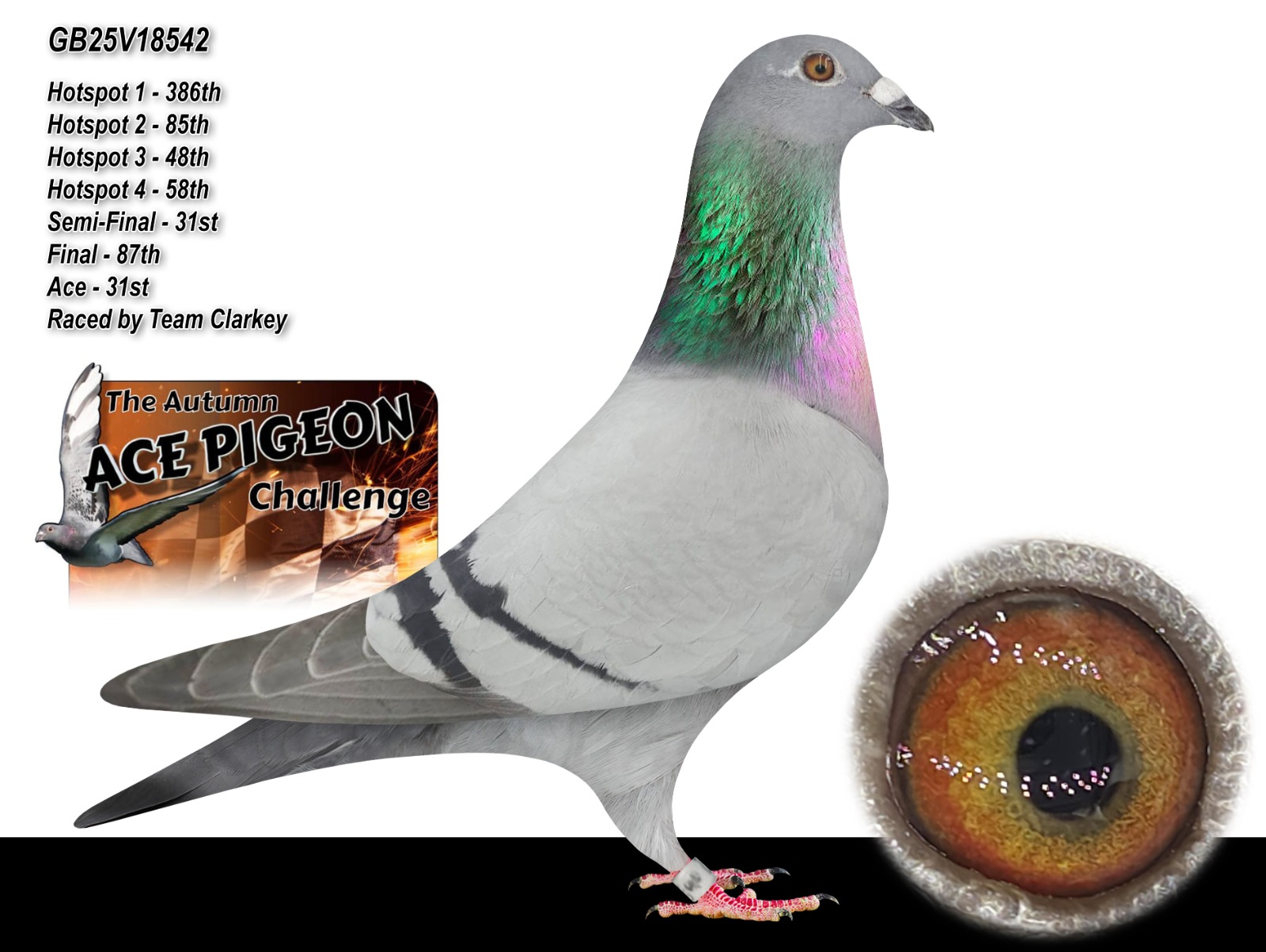 GB 25 V18542 “Clarkey’s 42” winner of 31st ACE PIGEON AUTUMN CHALLENGE RACE for ‘Team Clarkey’