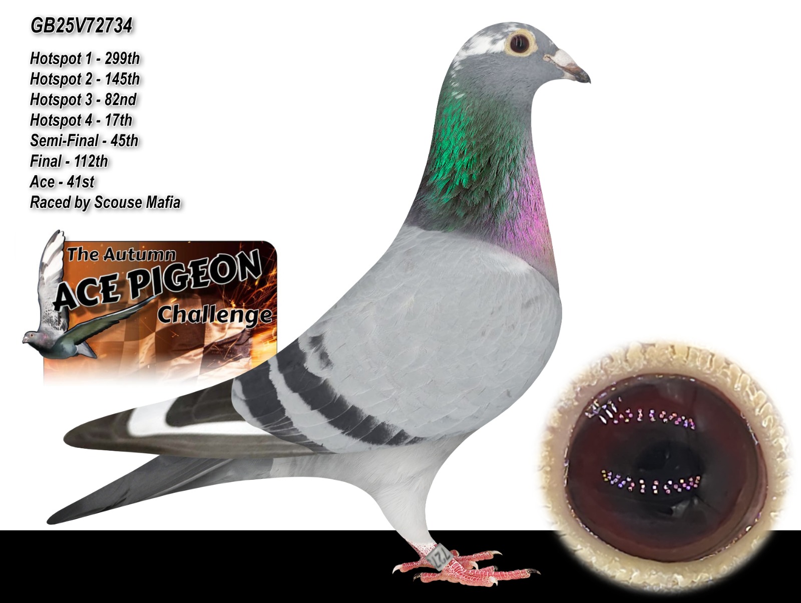 GB 25 V72734 “Peaceful” winner of 41st ACE PIGEON AUTUMN CHALLENGE RACE for ‘Scouse Mafia’