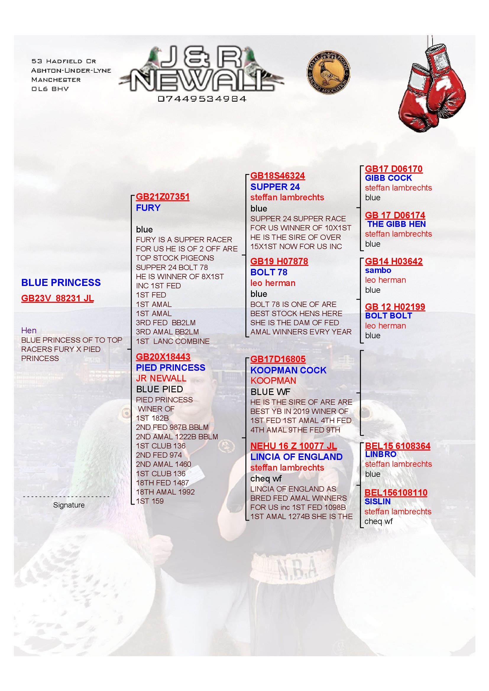 SIRE GB 21 Z07351 “Fury” the top racer and son of ‘Super 24 X Bolt 78’