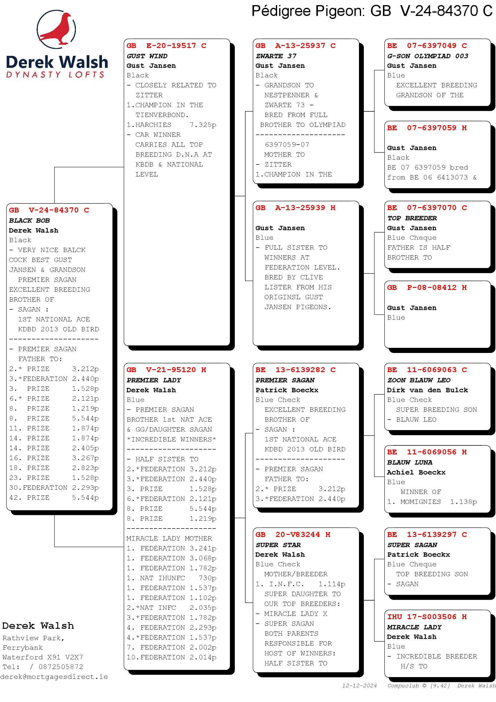 GB 24 V84370 Black Cock “Black Bob” he is a very nice black cock that is bred from the best of Gust Jansen birds X the Blauw Leo line.