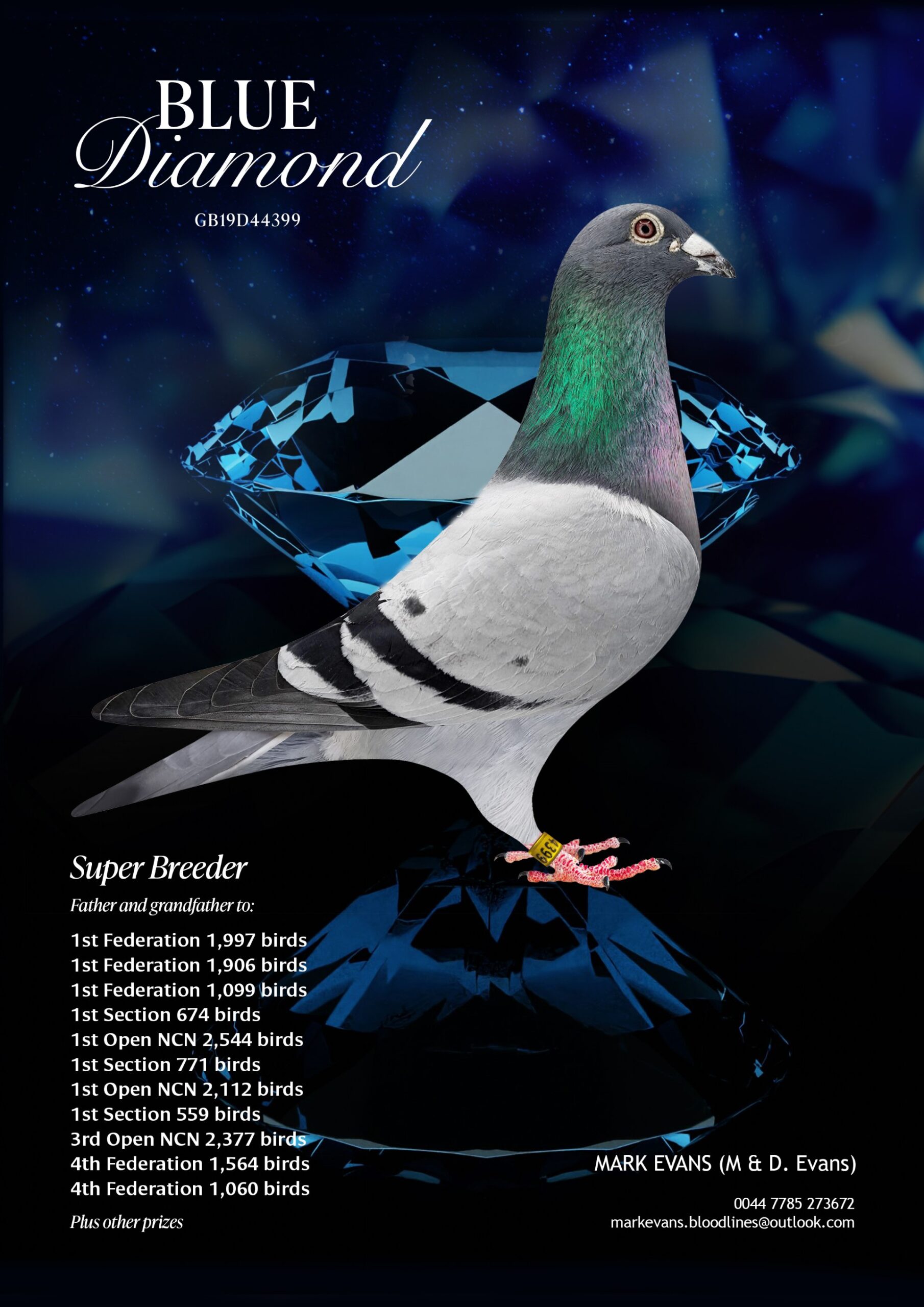 “Blue Diamond” cock GB19D44399 – Bred by Mark Evans.