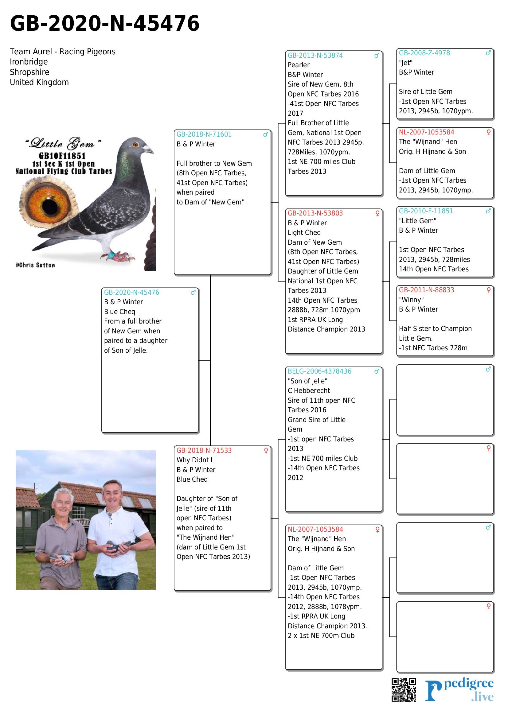 Wijnand hen is the mother to New Gem. Lot 5 is a sensational pigeon to bring into