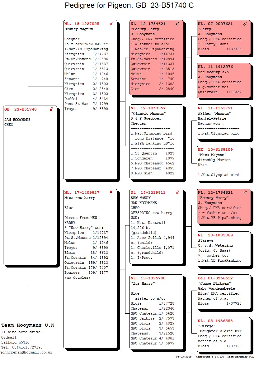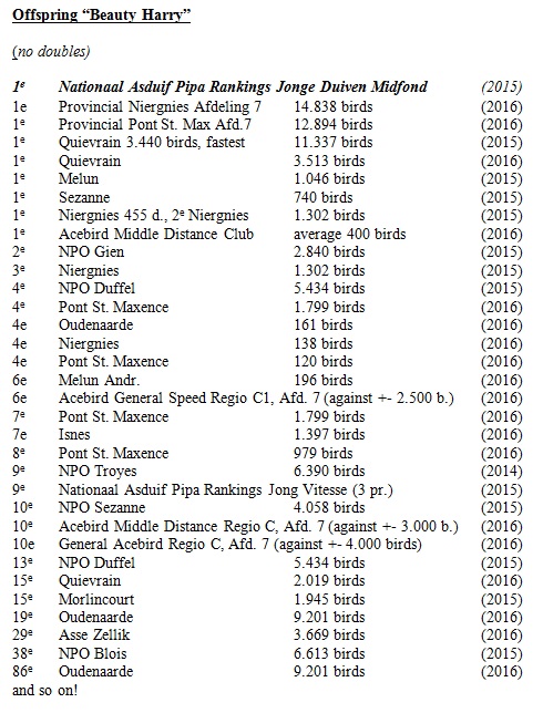New Harry himself won 2 provincial victories against more than 10.000 pigeons.