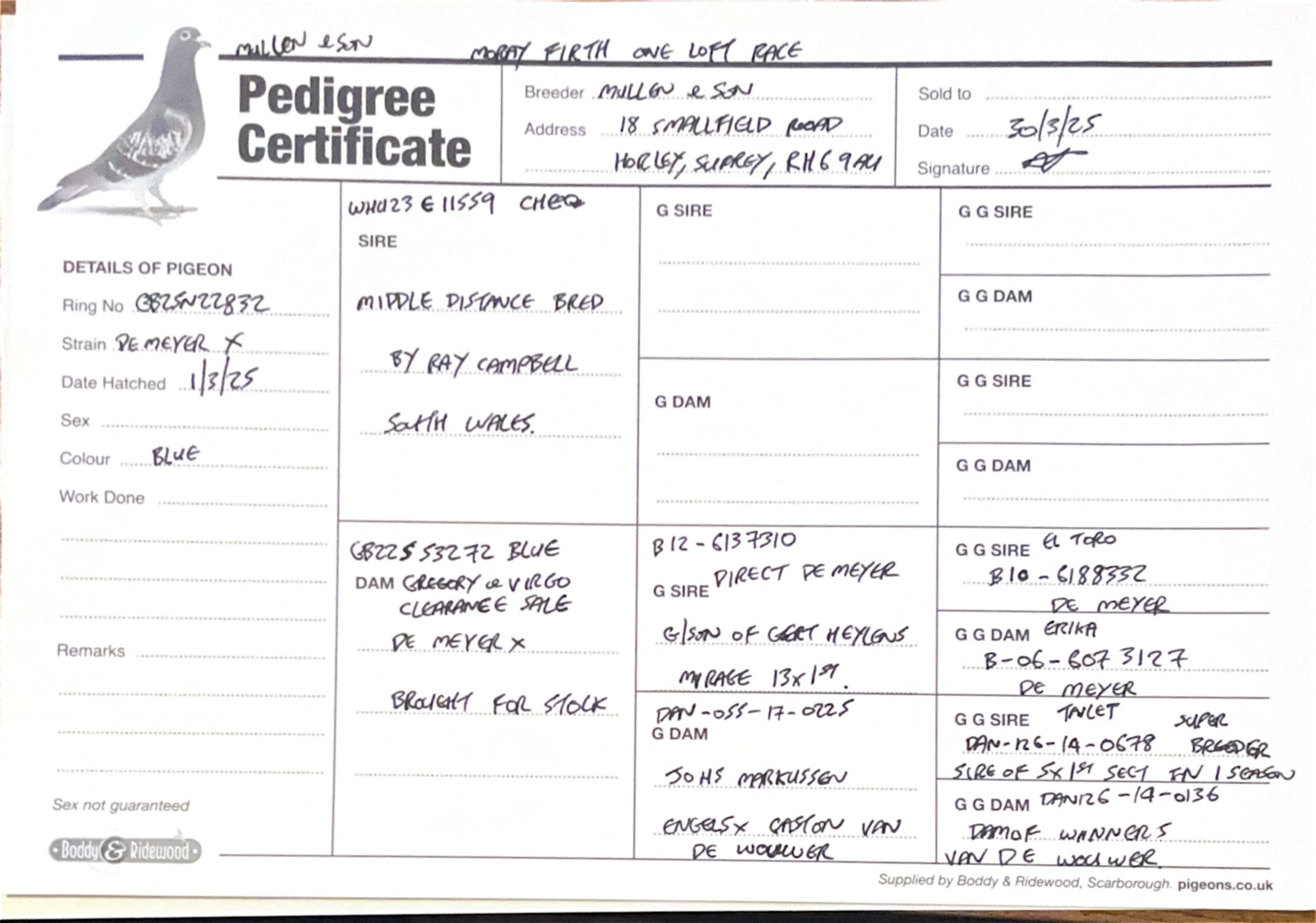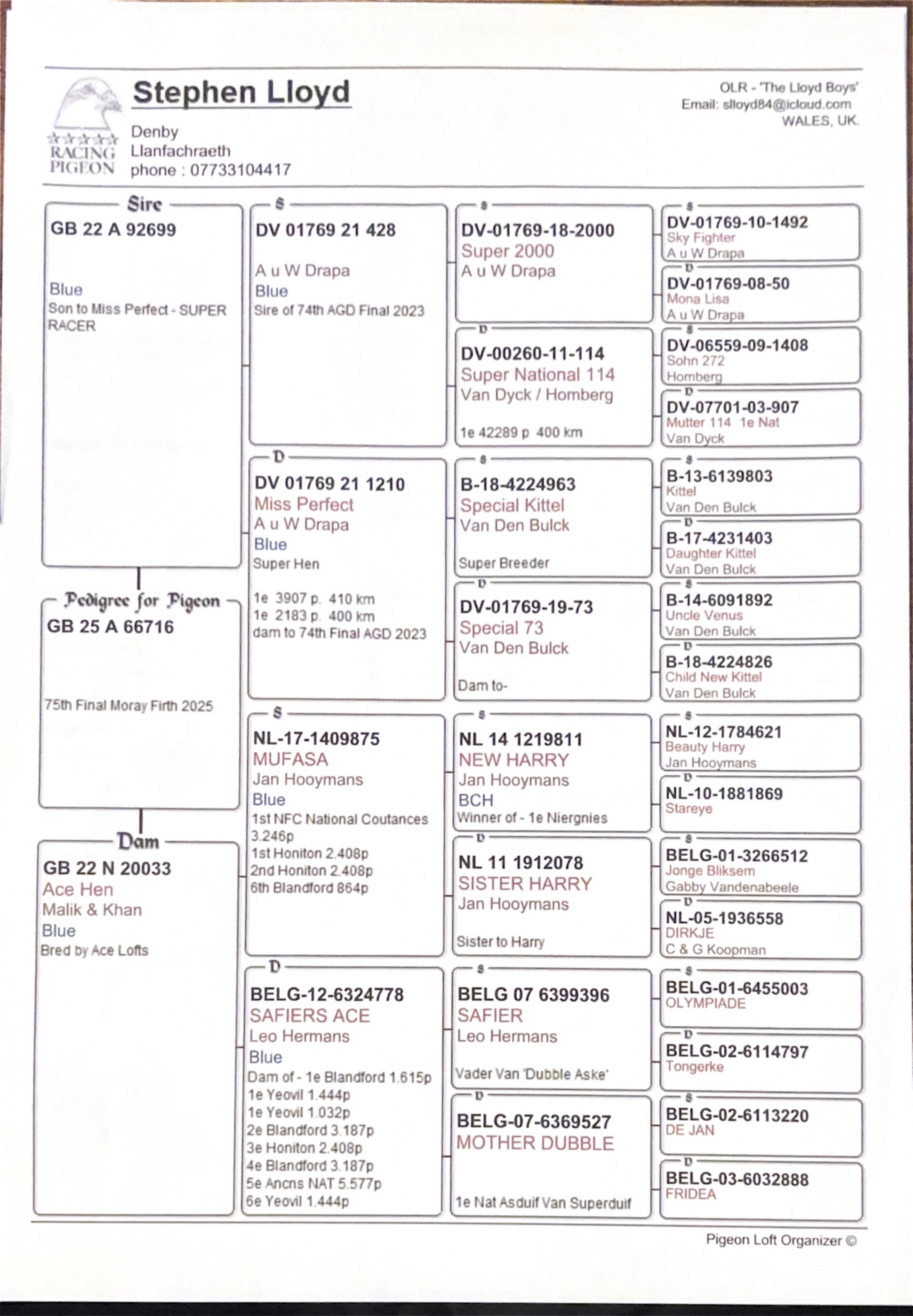 GB 25 N22832Moray Firth One Loft Classic RaceCurrent bid: £50Highest bid: PIGEON7625Time left