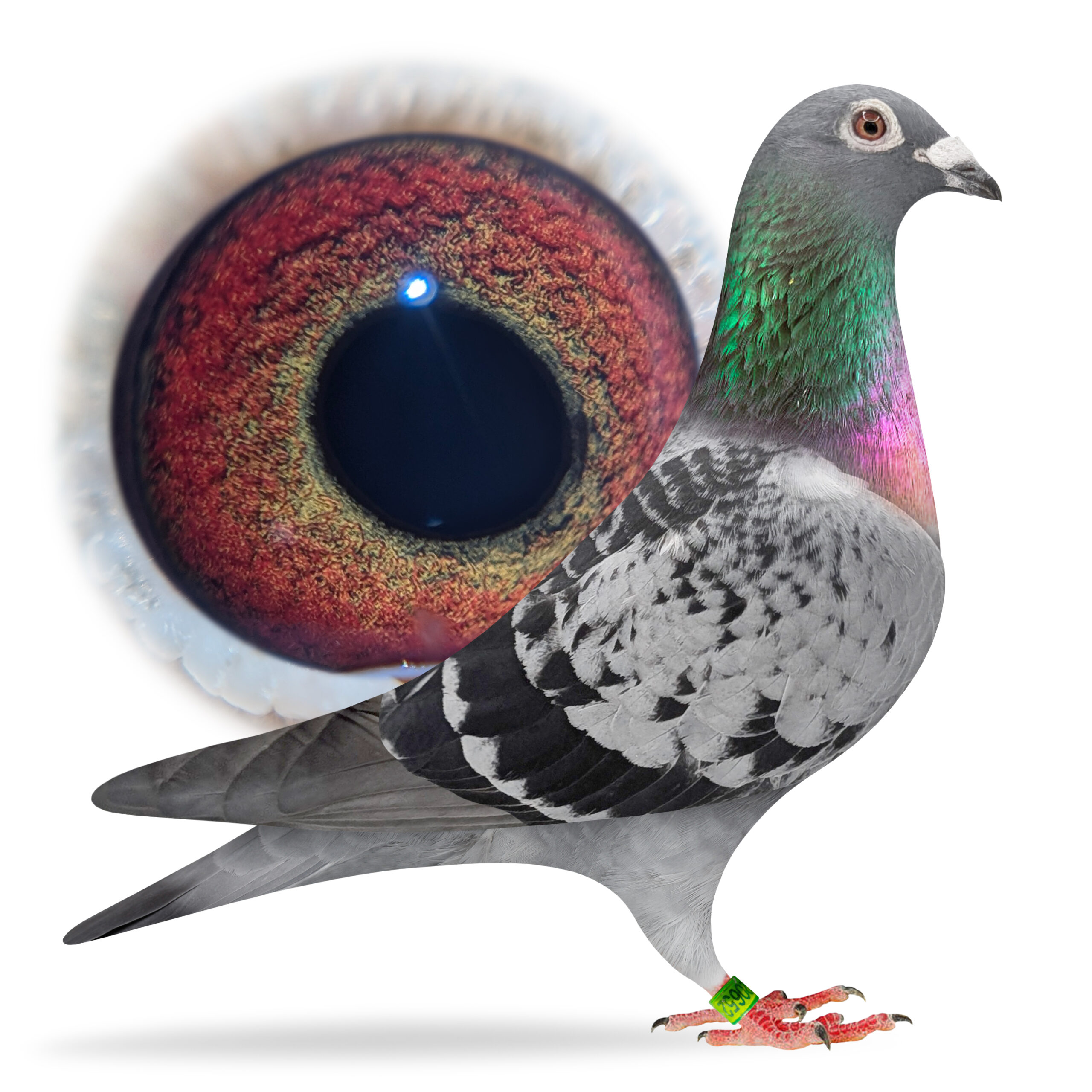 Her father is Belge 13-6321346 from Stefaan Lambrechts and her mother is Belge 13-6321367 again, from Stefaan Lambrechts. They are bred through Kleine Dirk, Van Loock Hen, Blauwe Leo, Olympic Poot and Blauw Gert.