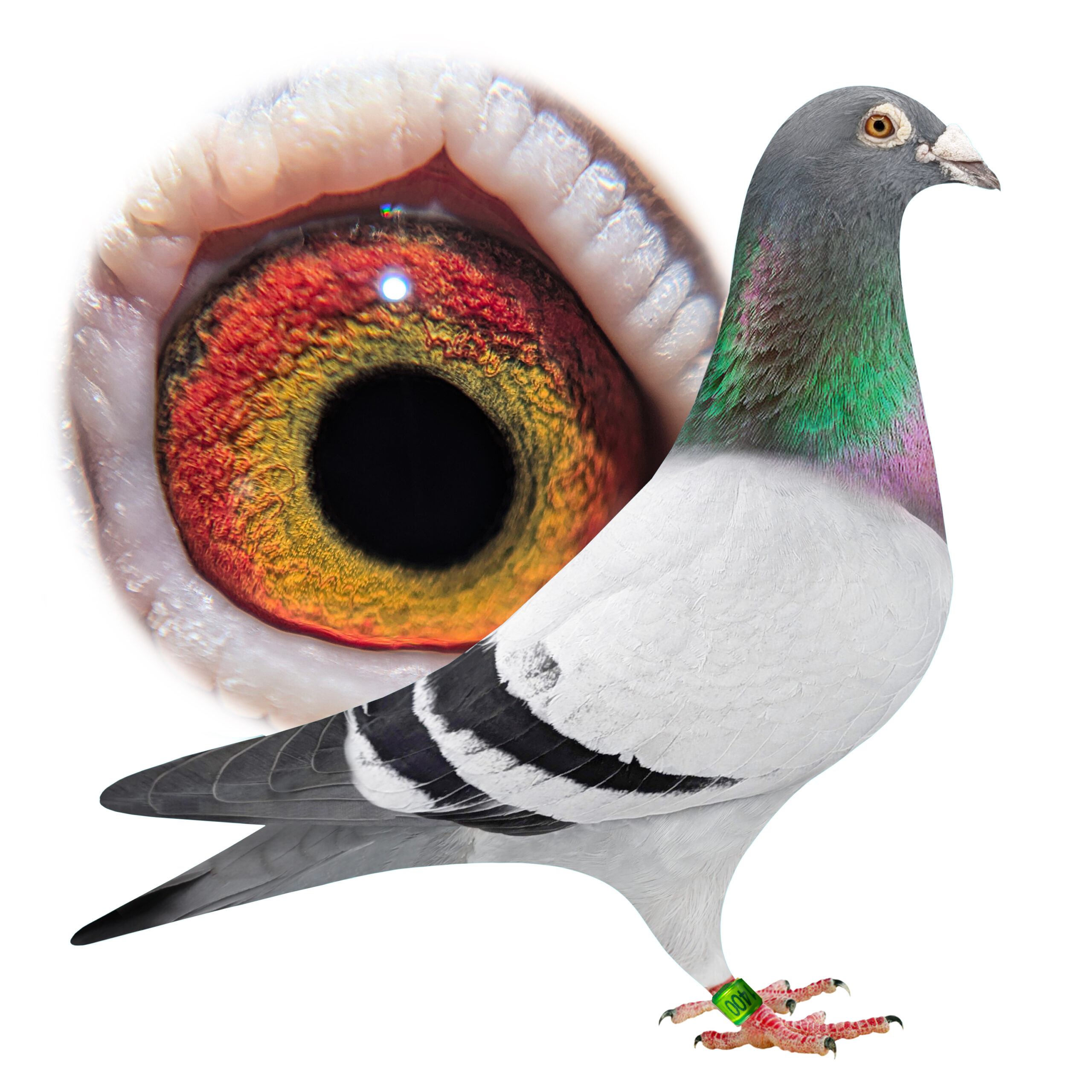 GB 15 D17384 “Emerald” from Gibb & Byrne, she is an Ace stock hen and dam to 4 X 1st Fed winners and 3 X 2nd Fed winners and 7th WDA Eastbourne 5,484b. She is also Stefaan Lambrechts Bloodlines, her father is the super breeder “Raven” and her mother is another direct Stefaan Lambrechts pigeon.