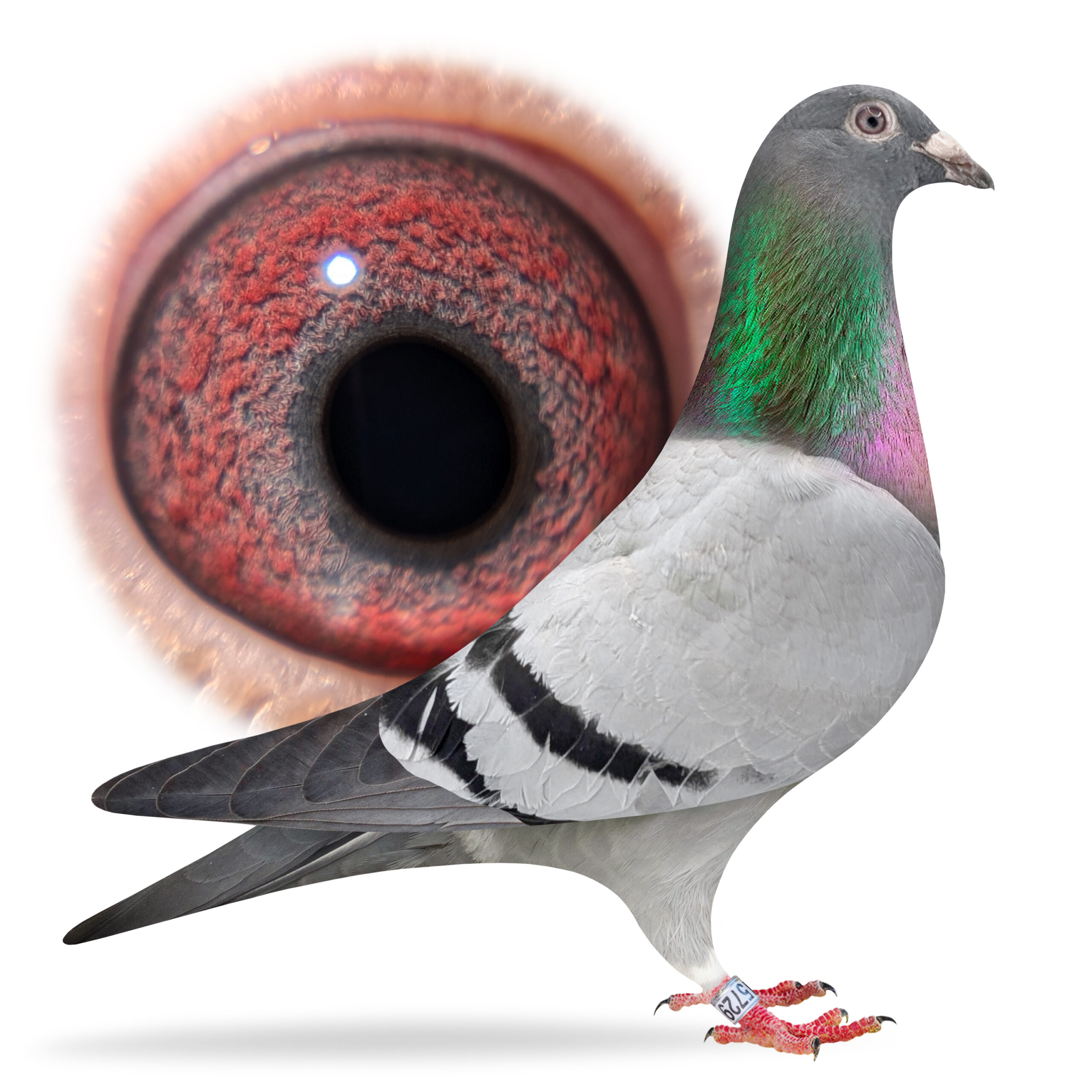 GB 25 B15729 Blue Cock “Young 157” he is a full brother to club, Fed and Open winners. He is a grandson of the principle pigeosn like New Femke, Emerald, The K Ring and Top Breeding Hen. He is also a direct son of the brilliant ‘157’