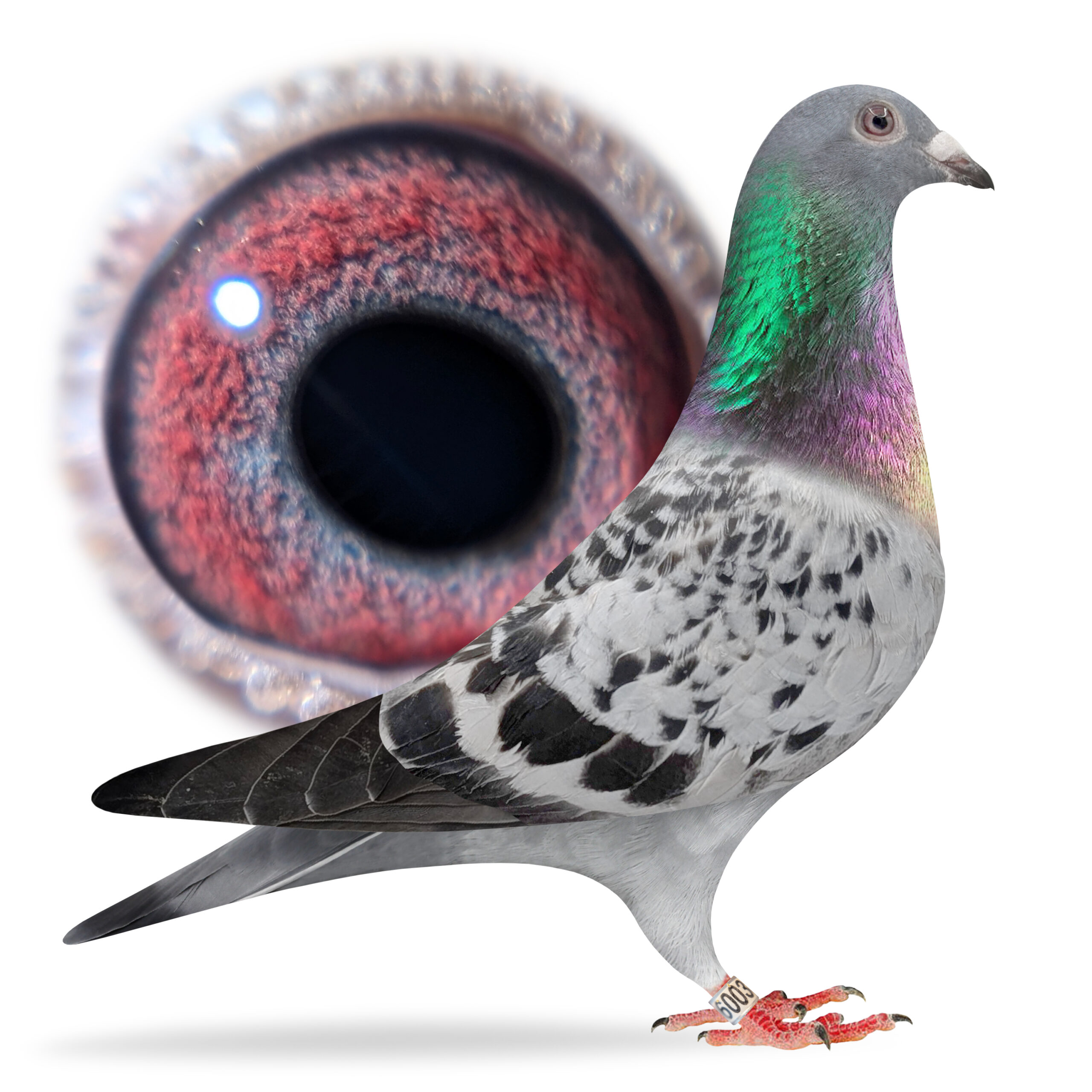 GB 17 N030686 Cock “ODIN” bred by May Pigeons; he is the Number One Stock Cock of the loft and a direct son of the wonder cock “Spiderman” making Odin a grandson of the super famous Rossi and Spinneke. Spiderman is a full brother to Nieuwe Rossi.