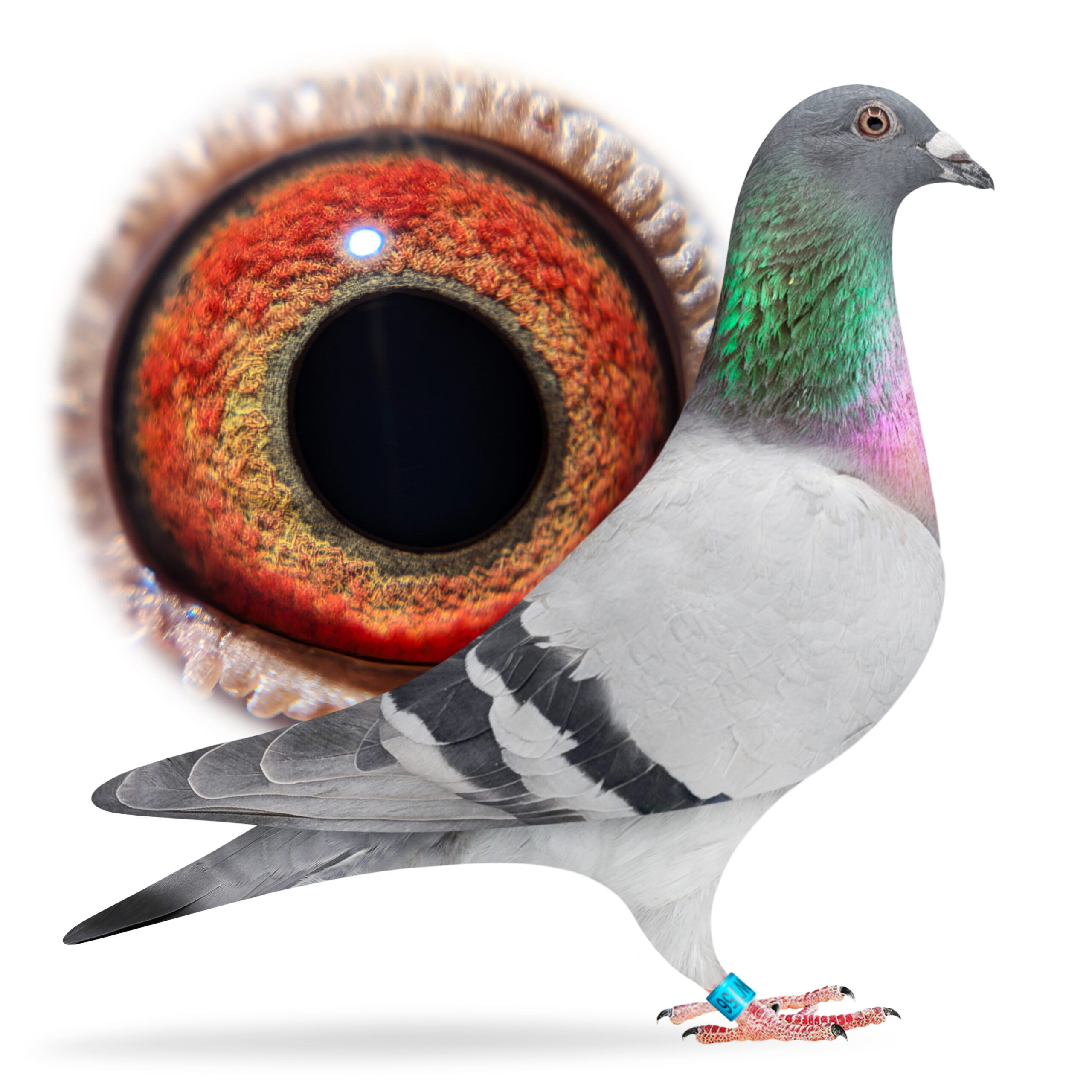 Blue hen BELG17-6084440 bred by Stefaan Lambrechts – original pedigree on display.