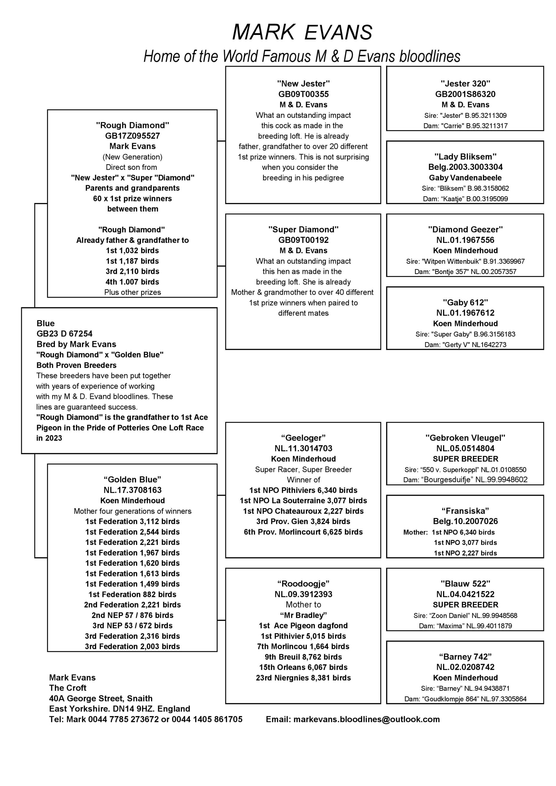NL16-3612467MARK EVANS“Highest Quality” NL16-3612467 Koen Minderhoud This super hen was specially selected by Koen for…