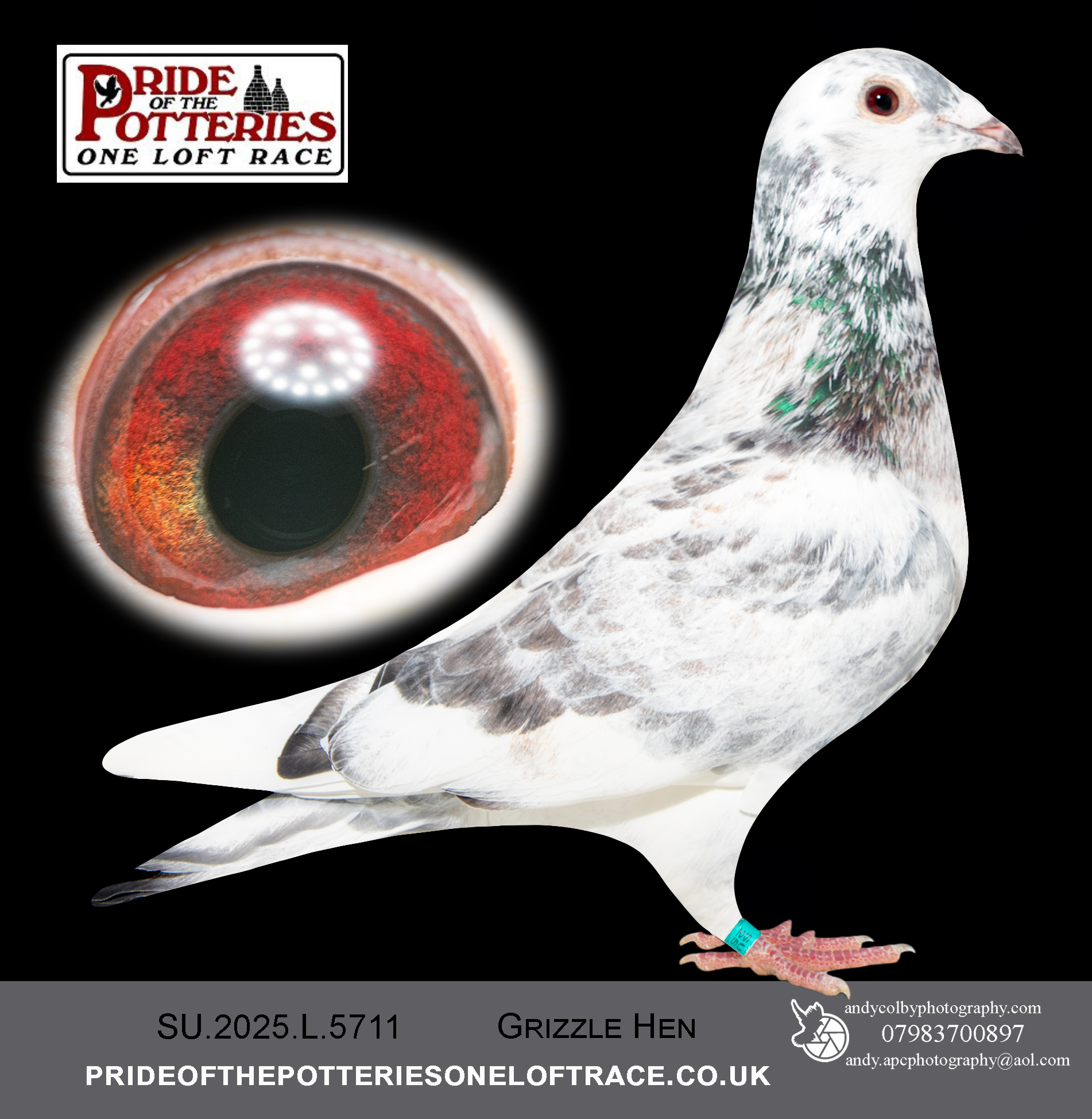 SU 24 L6722 Grizzle hen, she flew Kettering as a yearling 270 miles and both her parents come from May Pigeons.
