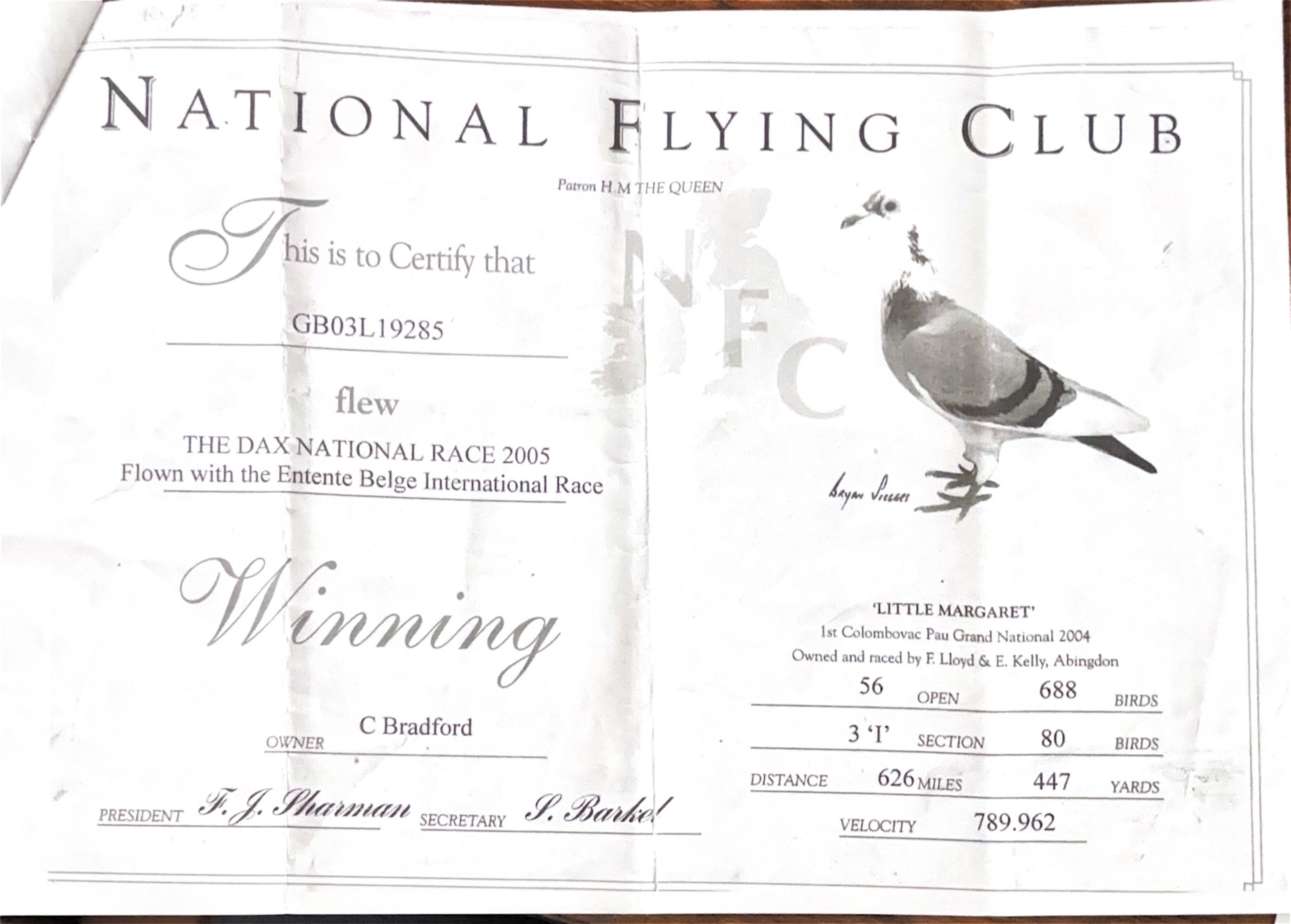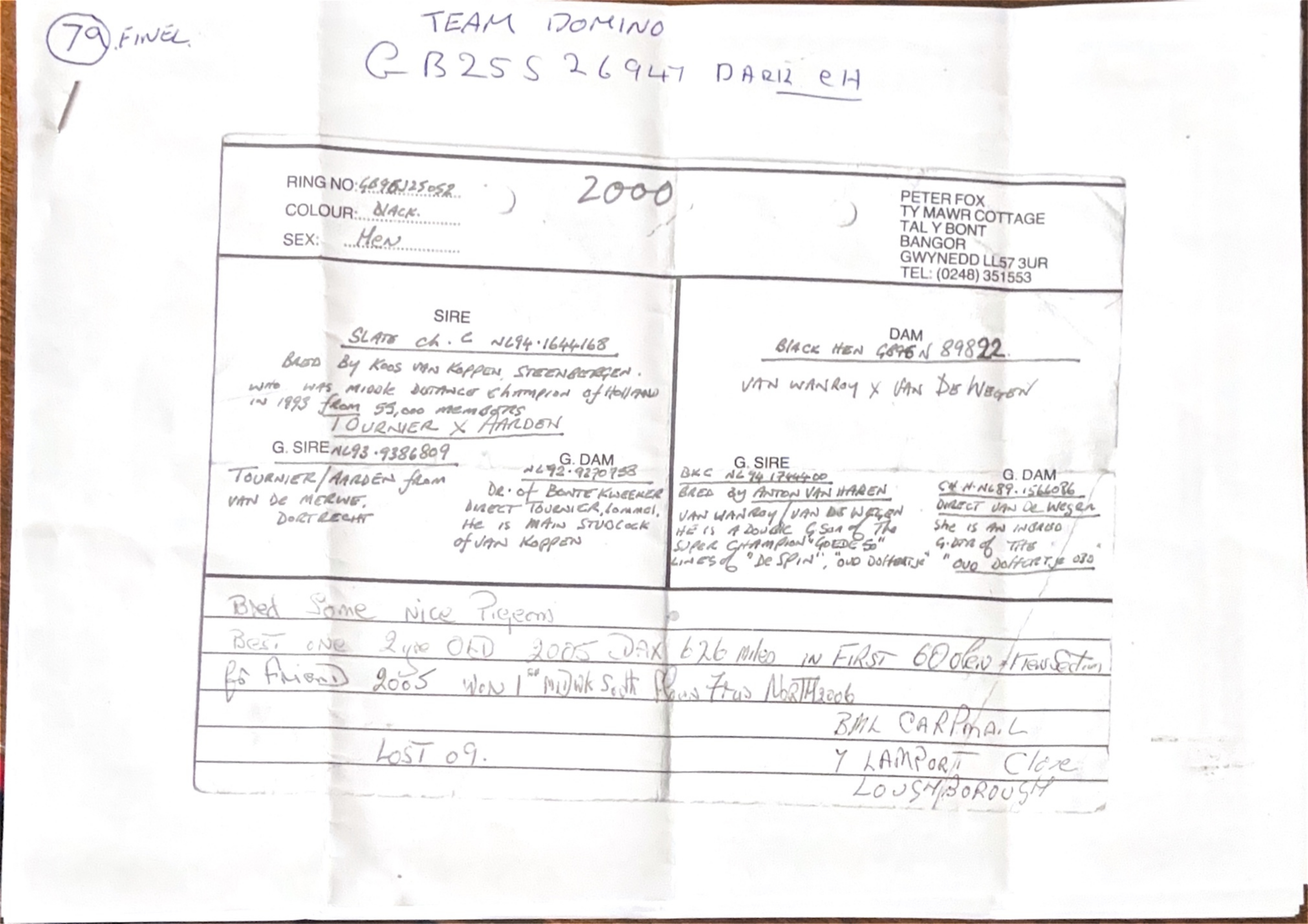 GB 25 S26947 Dark Cheq “Domino 947” winner of 79th Grand Final Falaise for ‘Team Domino”