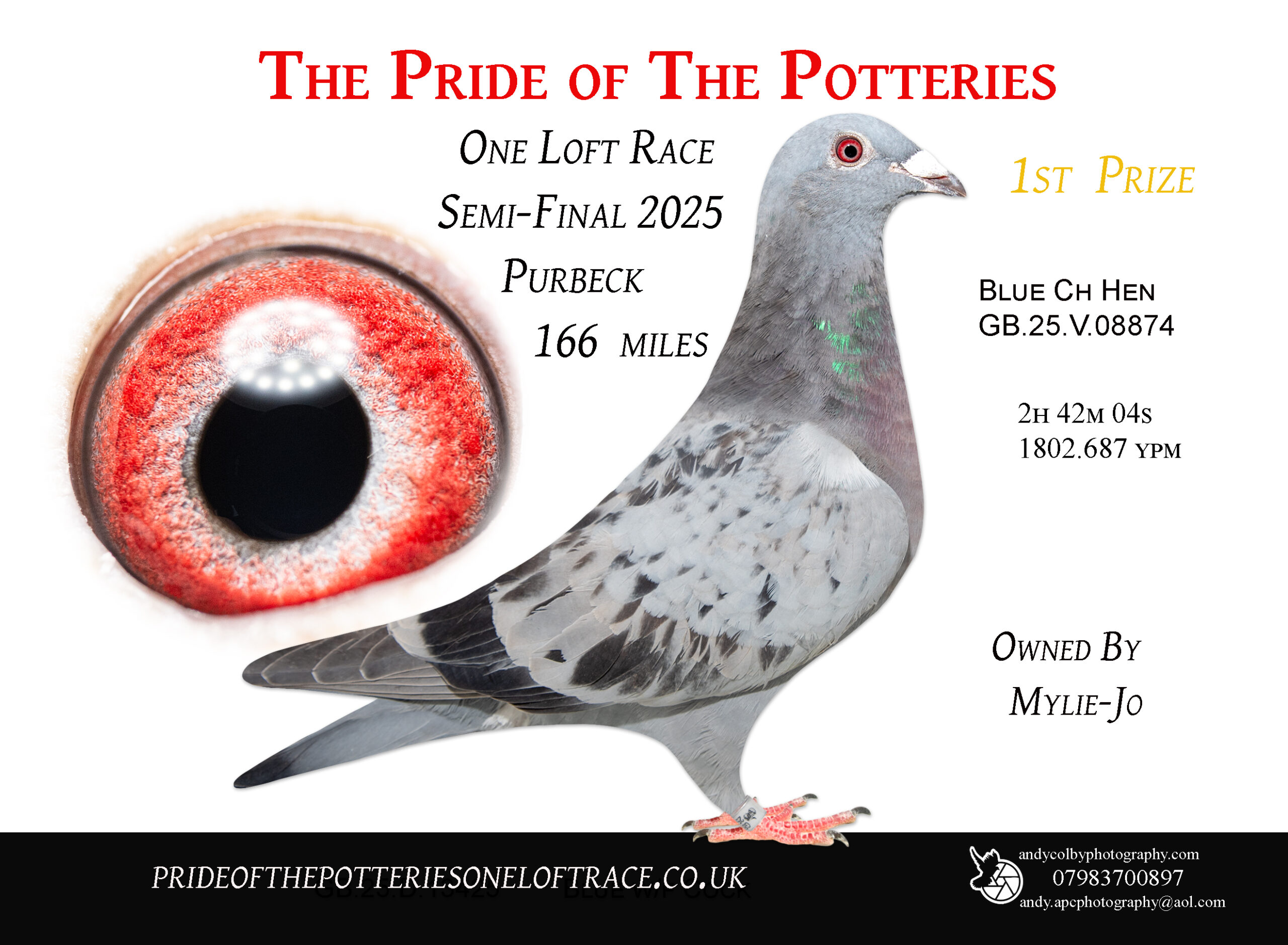 GB 25 V08874 “Jo 74” winner of 130th Grand Final Falaise and this was the Semi Final winner for Mylie = Jo and this is a very well bred pigeon.