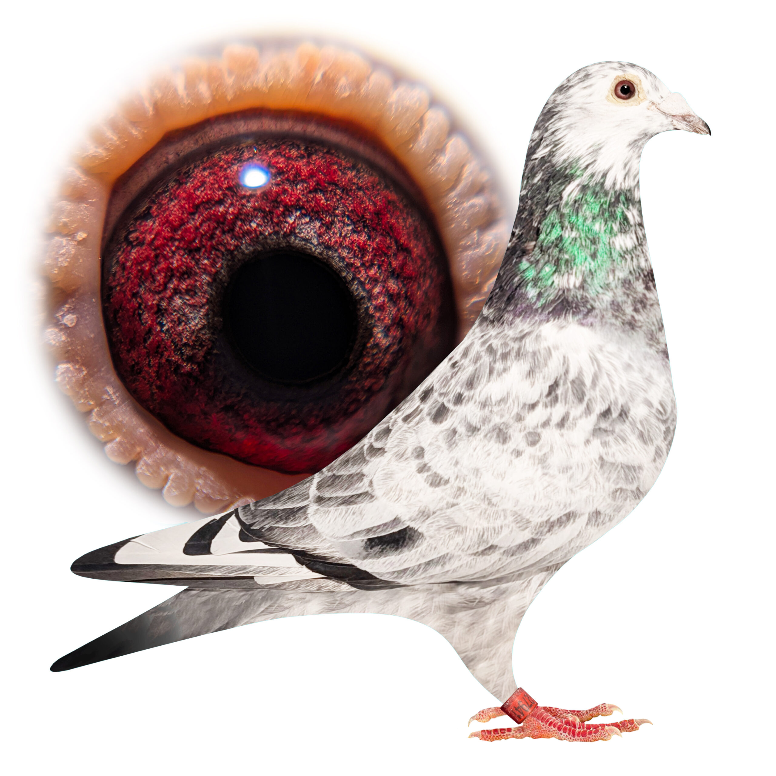 A proven performer and very well bred. Pigeons like this deserve to be placed on a pedestal for the number of prizes he has won. He will certainly leave his mark in any stock loft. He is direct from the hen that has bred 3 different 1st Open Combine winners.