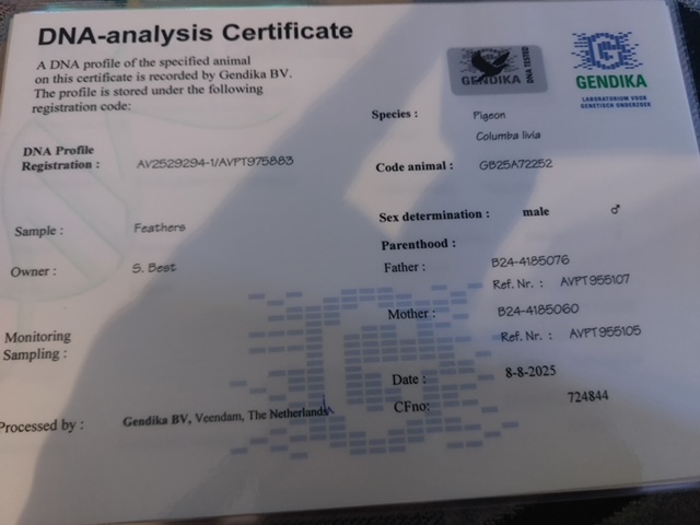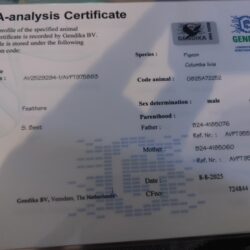 Belg 24-4185076 “Blizzard Prince” DNA Certified direct son of Blizzard King Kittel, the 1st National Ace KBDB Sprint Champion 2021 YB, 1st World Best Pigeon FCI 2021 YB, 1st Provincial Ace Pigeon 2021 with the best % YB since the Immortal Kittel in 2013.