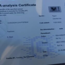 Belg 24-4185076 “Blizzard Prince” DNA Certified direct son of Blizzard King Kittel, the 1st National Ace KBDB Sprint Champion 2021 YB, 1st World Best Pigeon FCI 2021 YB, 1st Provincial Ace Pigeon 2021 with the best % YB since the Immortal Kittel in 2013.