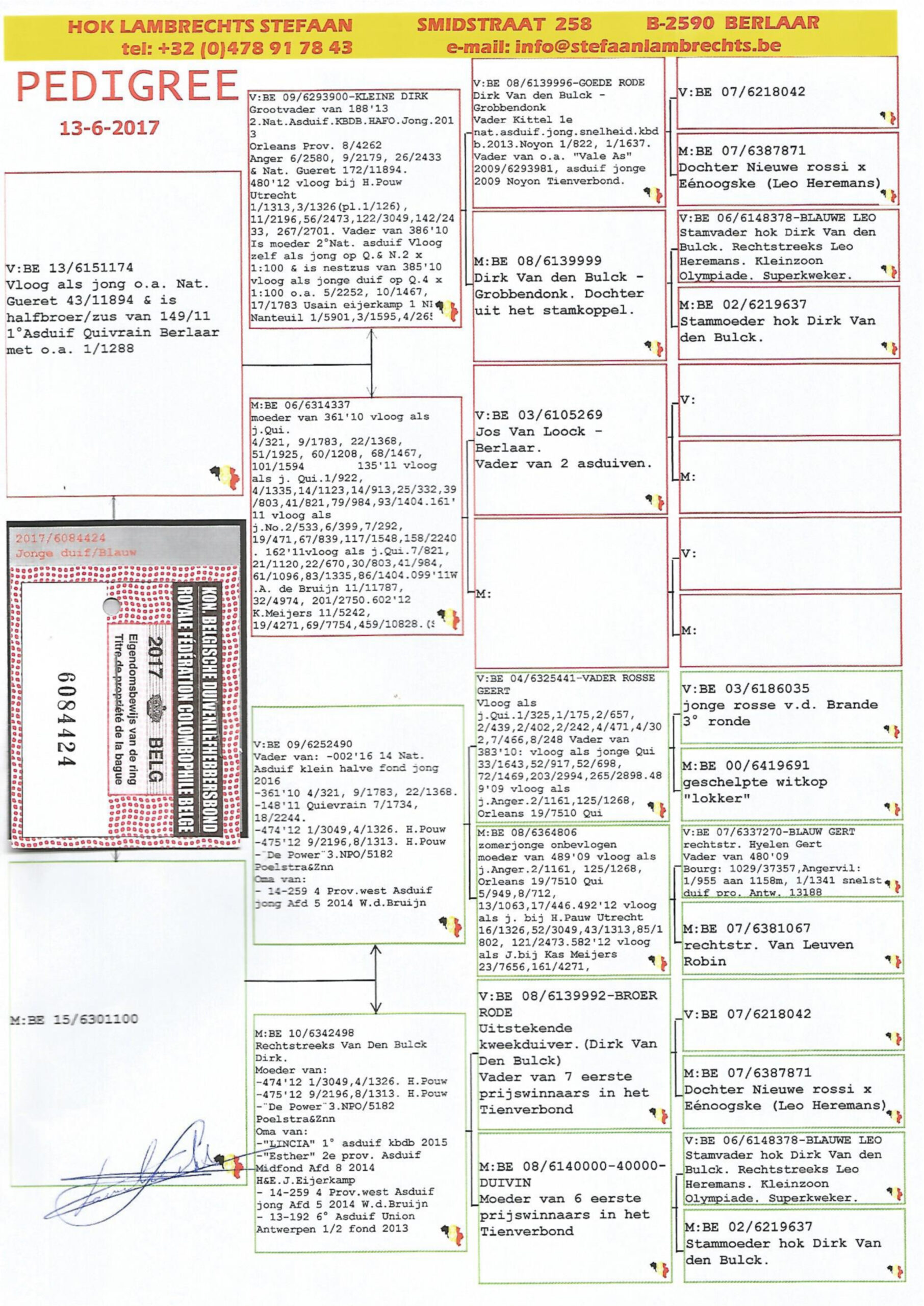 Dam to “Lambrechts 24” is BELG15-6301100 Gdtr 40000-Duivin full sister to: