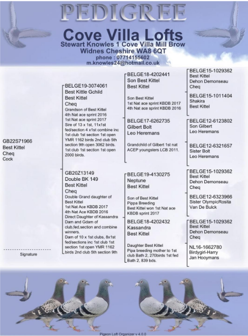is the line on offer, he really is line bred to this famous bird. Stewarts donation – GB 22 S 1966