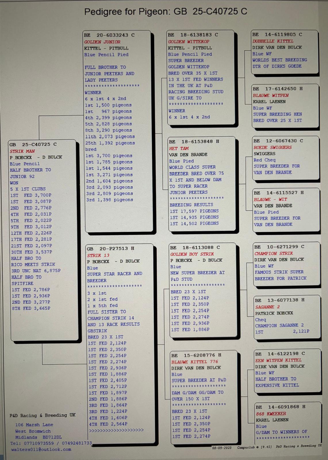 11th 2,073 25th 1,392. In the breeding loft he is responsible for 1st 3,700, 1st 1,785,