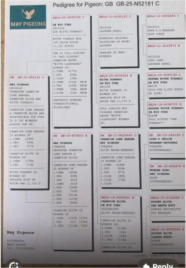 Heremans/Ceusters and May pigeons. A super youngster sure to please the lucky buyer.