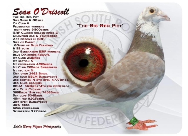 What a super pigeon. Direct from “Paddy” who is direct from “The Big Red Piet” who in turn is