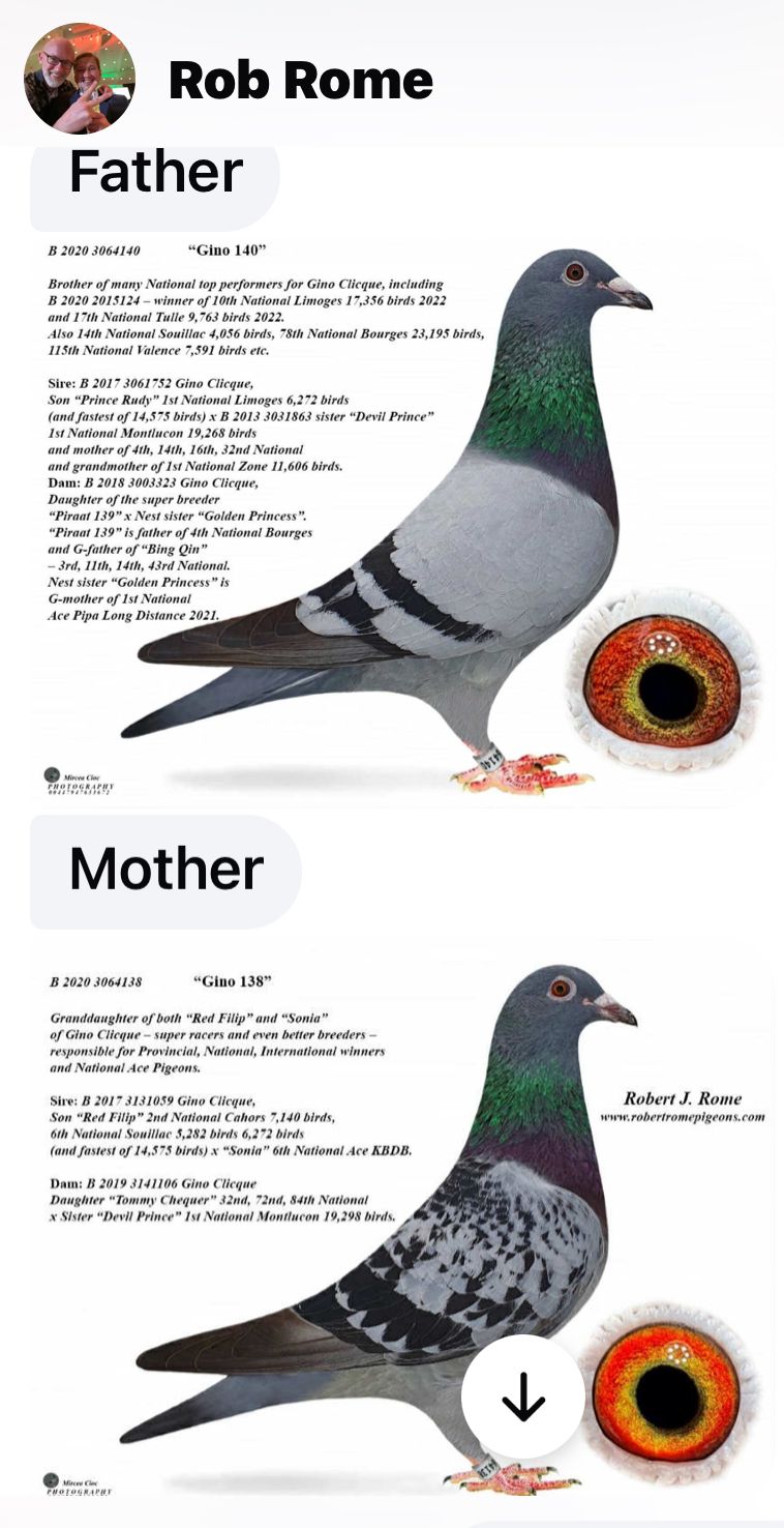 from 14,575 birds!! Also granddaughter of “Sonia” 6th Nat “ACE” KBDB. Just to put the