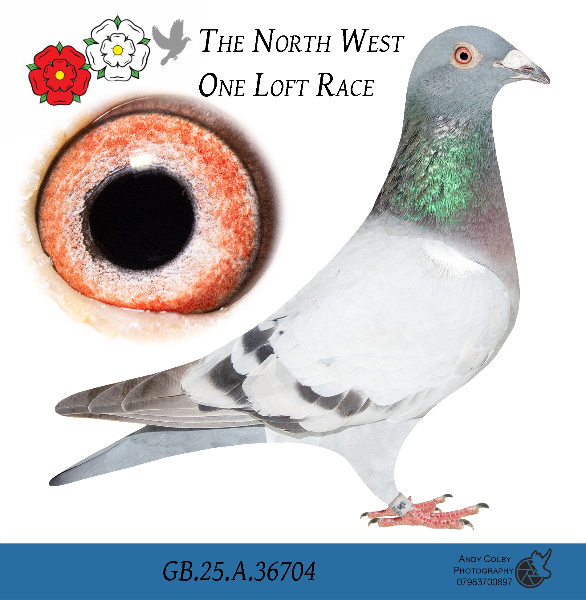 GB 25 A36704 Blue Hen “Wade Inn” winner of 70th Open Grand Final Yeovil and she was the 69th ACE PIGEON winning 65th HS1, 73rd HS2, 34th HS3 and 98th Semi-Final for Wade Davies.