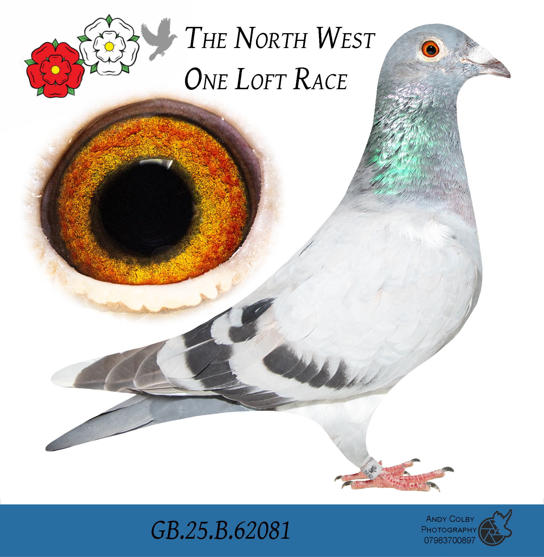GB 25 B62081 Blue WF Cock “Sharp Tool” winner of 74th Open Grand Final Yeovil and he was the 68th ACE PIGEON and a good consistent Hotspot prize winner. He won 25th HS1, 87th HS2, 47th Hs3 and 6th inn the Semi-Final. Entered by Harrison Tools.