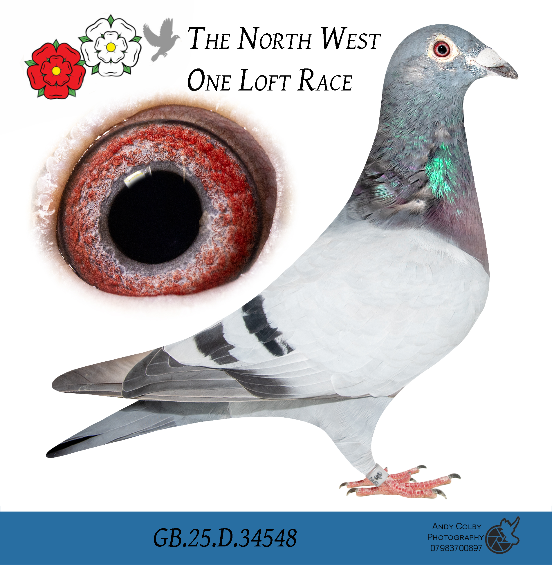 GB 25 D34548 Blue “Wilsons 48” winner of 68th Open Grand Final Yeovil and in the hotspot races this pigeon won 77th HS1, 108 HS2, 3rd in HS3 and 99th in the Semi-Final bred by Silsden & Wilsden.