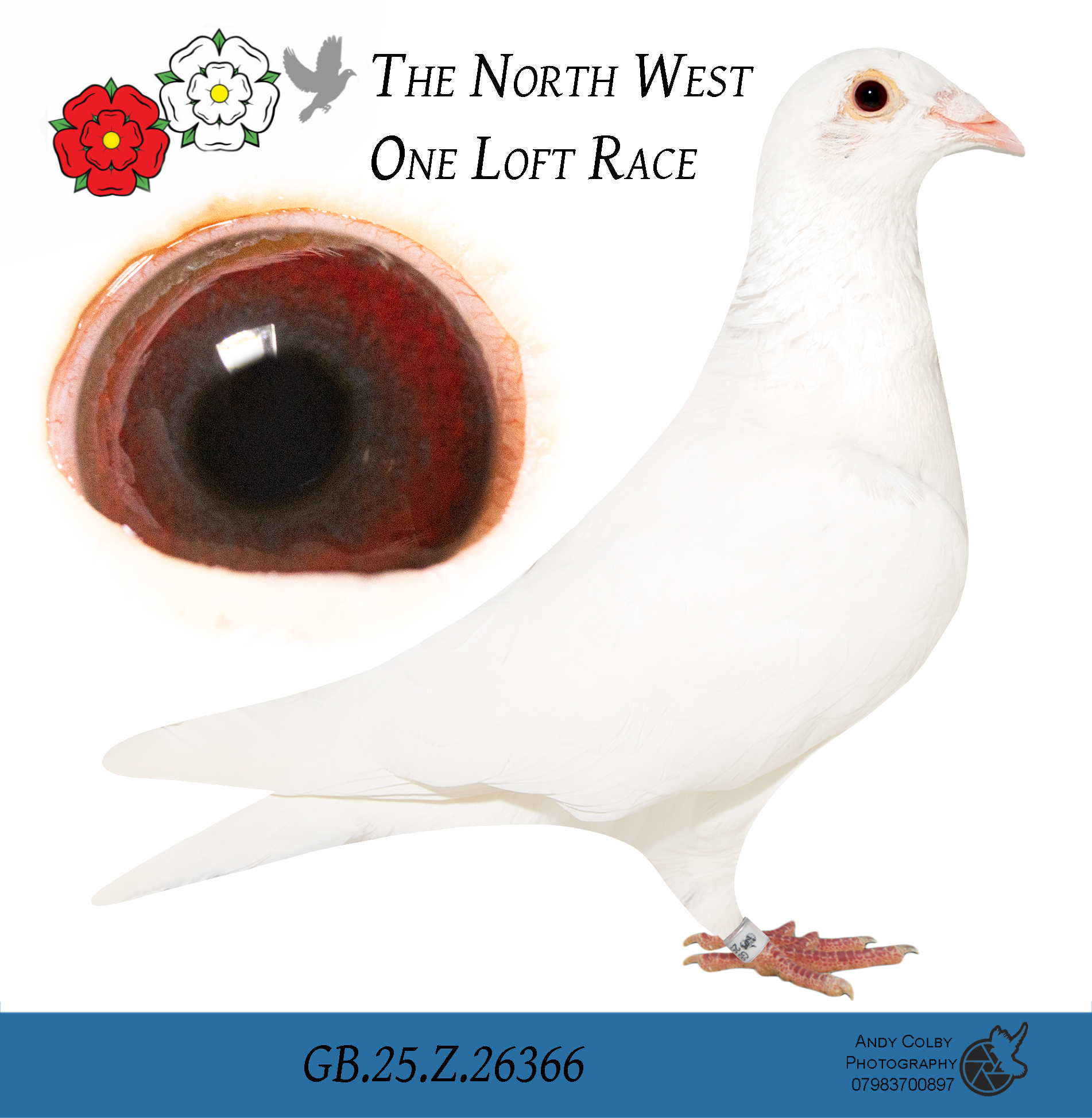 GB 25 Z26366 White Hen “Casper” winner of 62nd Open Grand Final Yeovil and she was the 93rd ACE PIGEON winning 143rd HS1, 70th HS2, 103rd HS3 and 64th Semi-Final, she is a lovely hen that never let herself down. Bred by John Wood & Son from Oldham and entered by “Ed Maxwell”