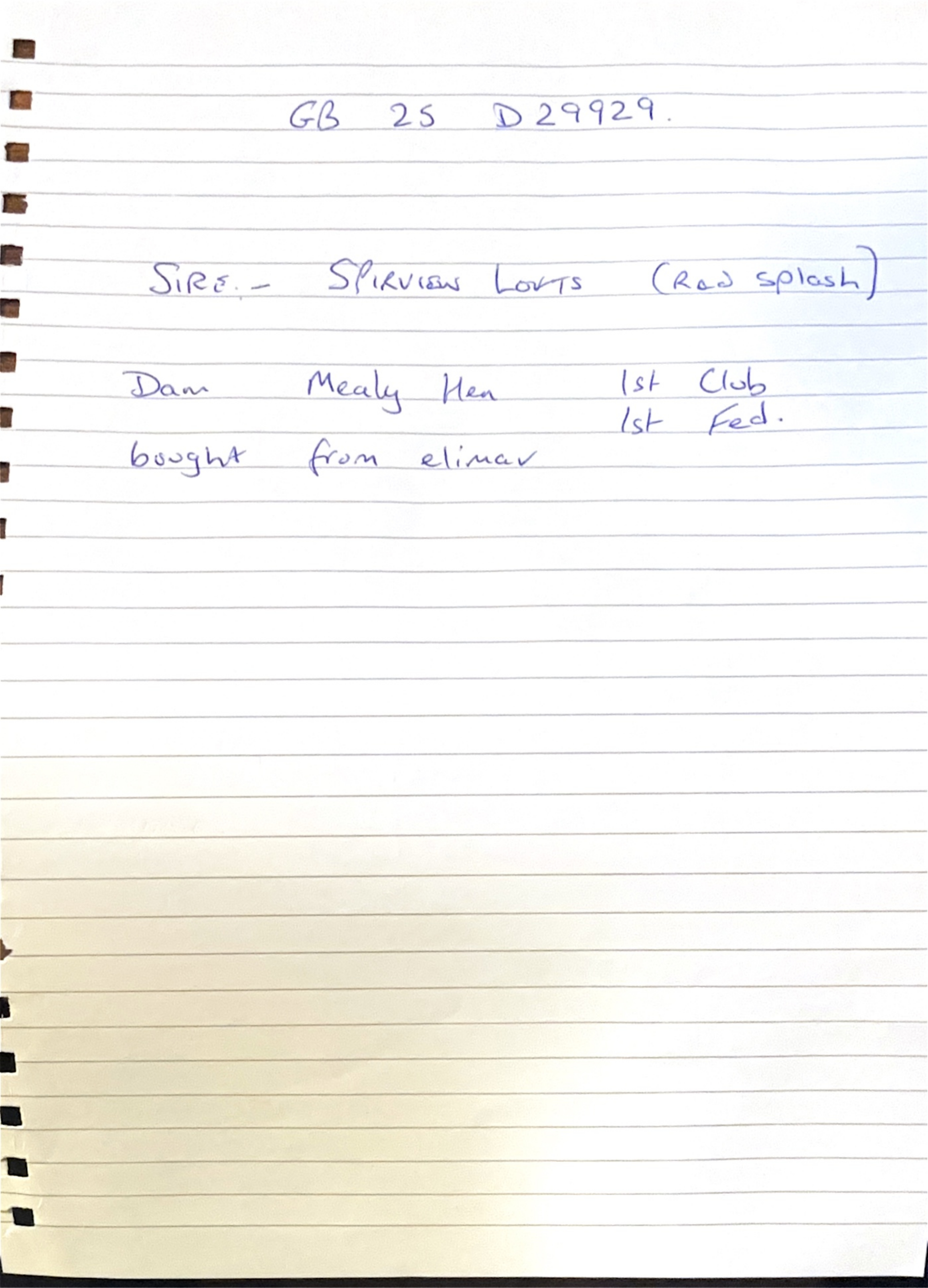 Mealy Hen, she is the winner of 1st Club, 1st Fed and was bought from Elimar website.