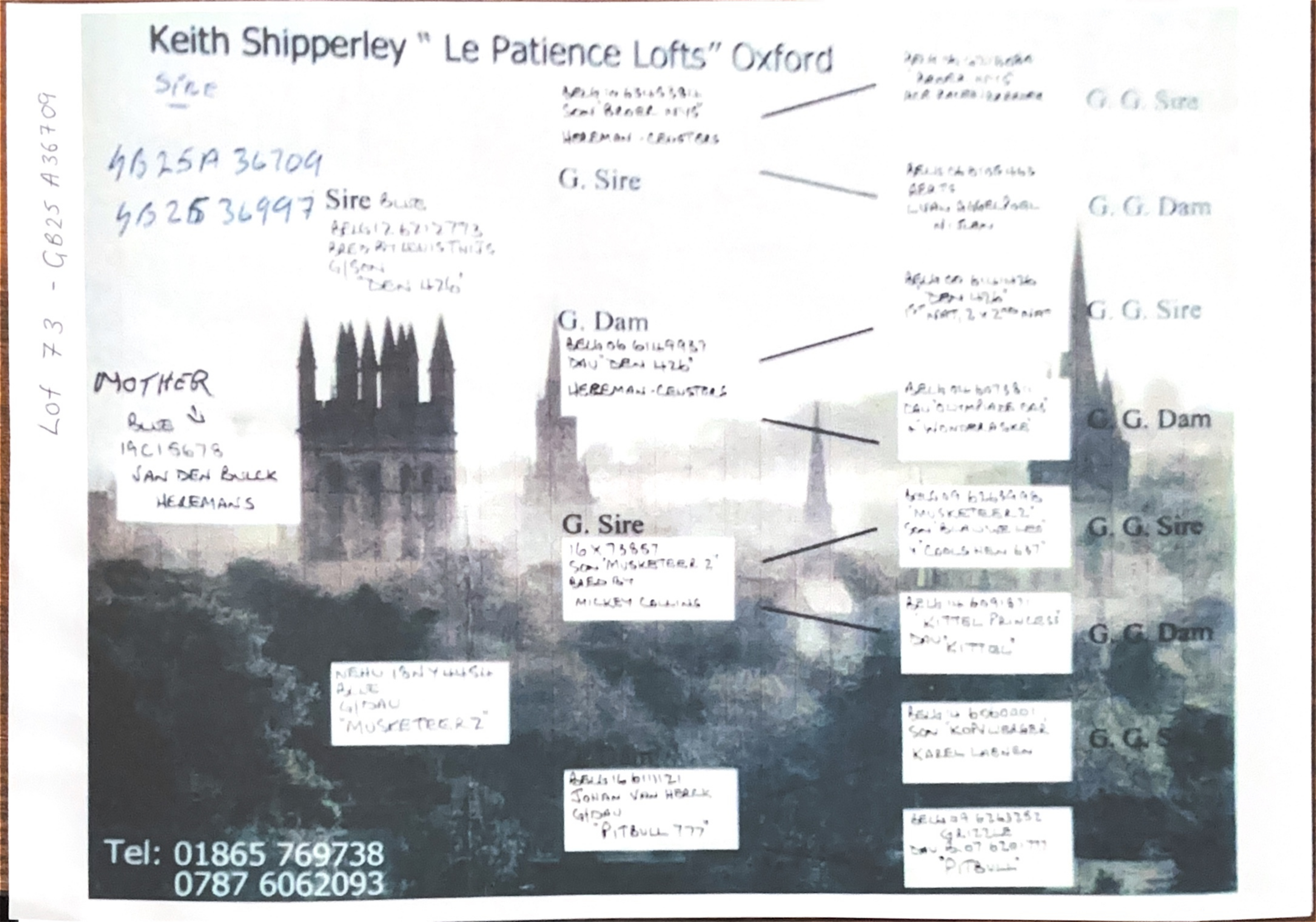 19 C15678 Van Den Bulck/Heremans. His father is Den 426 bred by Louis Thijs and goes back to the lines of Olympiad 003 and Wonder Aske of Leo Heremans. The mother to 15678 is a granddaughter of Musketeer 2 and go back to the Blauwe Leo & Cools hen 637, and the Pitbul and Kittel.