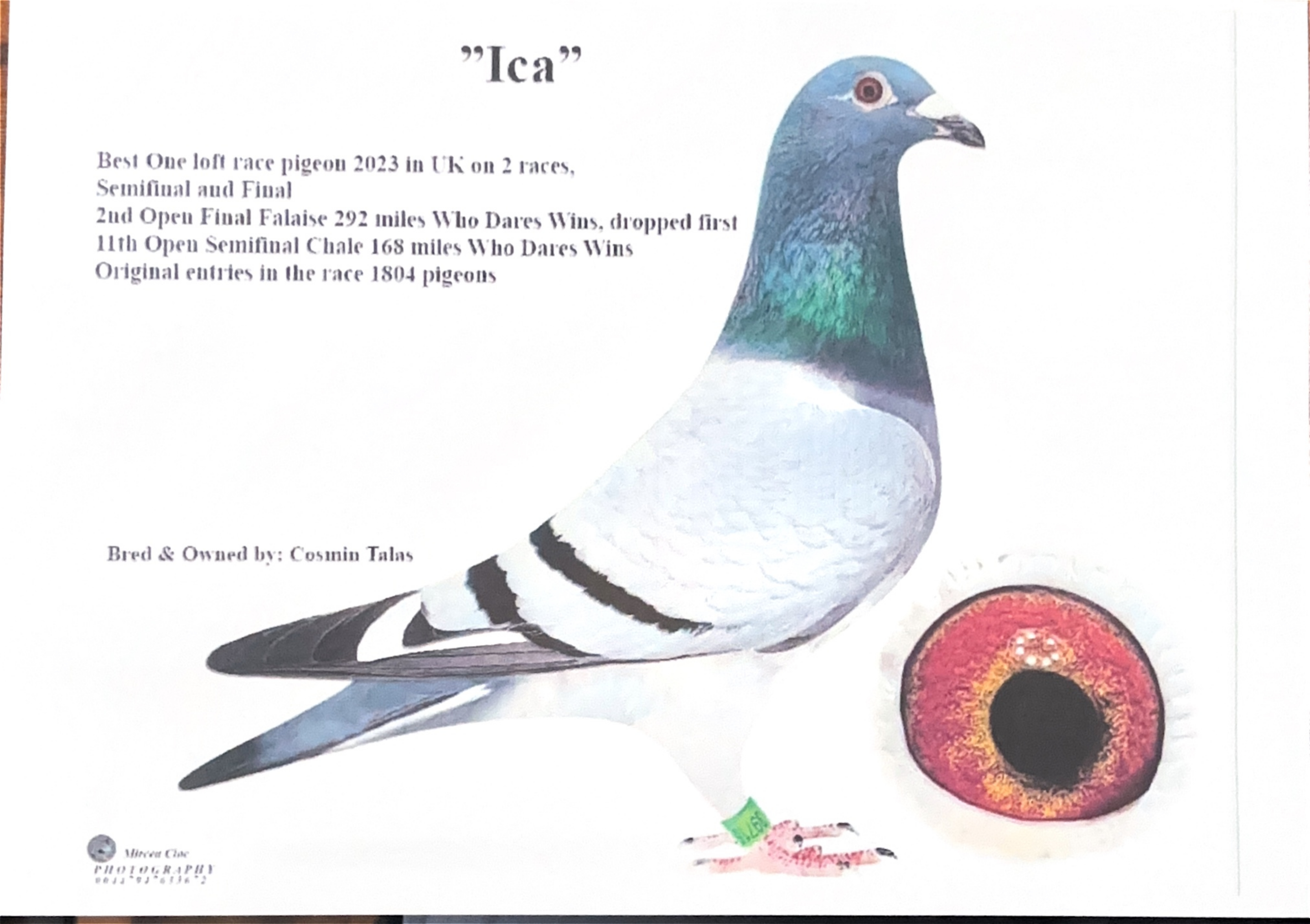 GB 22 C25213 full sister to ‘ICA’ best OLR pigeon in the UK 2023 on 2 races winning 2nd Final WDW Falaise and 11th Semi-Final Chale. From 2 children bred from her, one wins 3rd HS UK Premier OLR. Her father is Rico and her mother is Sara. Rico is father to 1st Amal Fougeres and is bred from Asterix X Wit Spook and Sara is a daughter from Sagan from Patrick Boeckx.