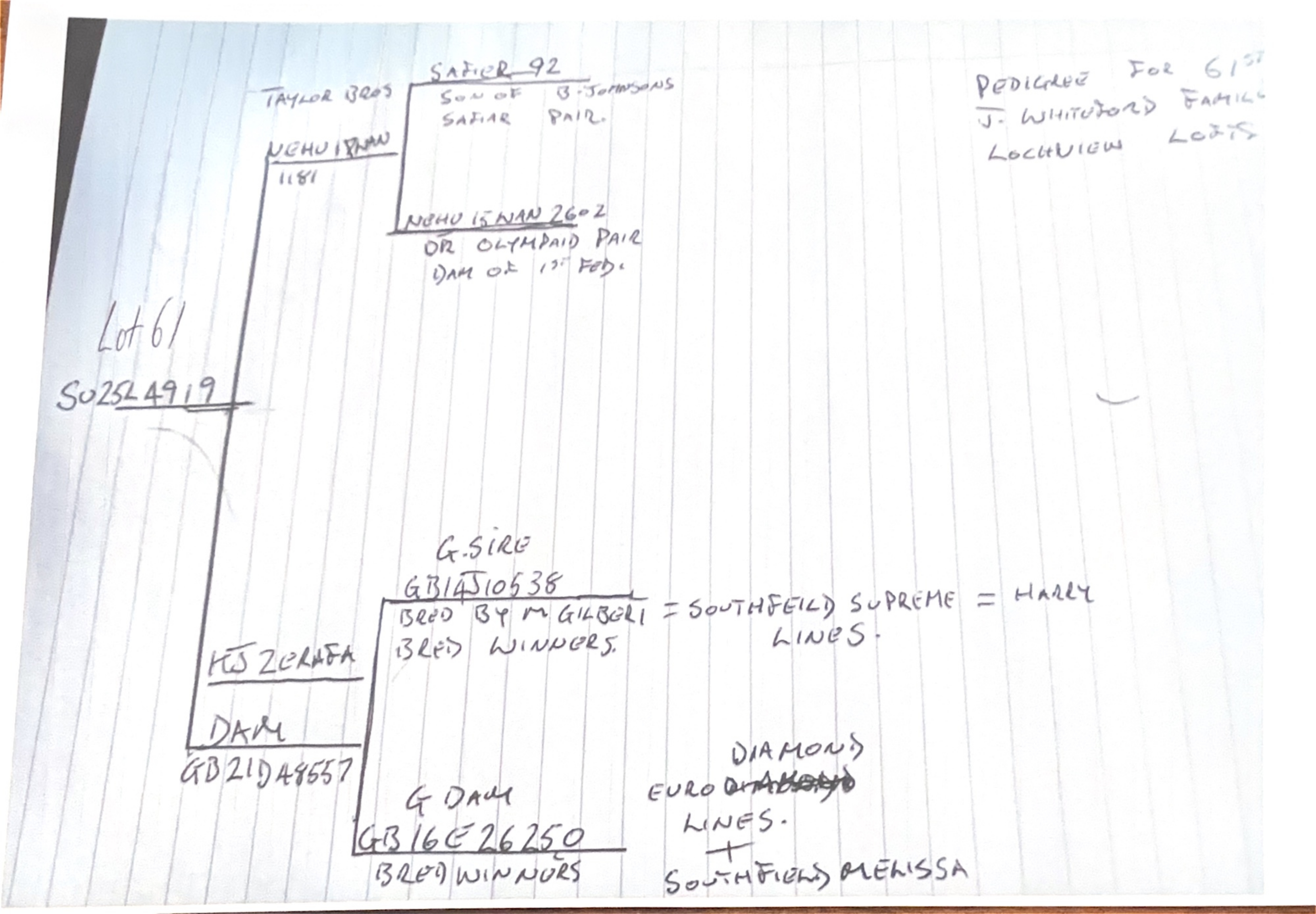 NEHU 18 WAN-1181 from Taylor Brothers his father is a son of Brian Johnsons Safier Pair and his mother is a daughter of The Olympiad Pair, she has bred fed winners.