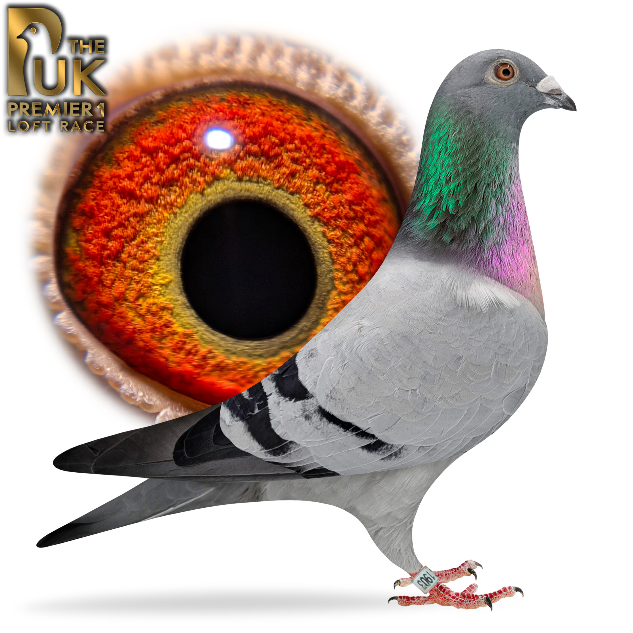 From Gibb & Byrne; she won 1st club Ackworth 99b, 1st club Eastbourne 66b, 1st fed 522b, 3rd WDA 3,324b, 1st Hemswell 437b, 1st fed 1,112b and 1st WDA 6,959b. Her father is a Stefaan Lambrechts cock and her mother is also a Stefaan Lambrechts hen and a daughter of The Raven