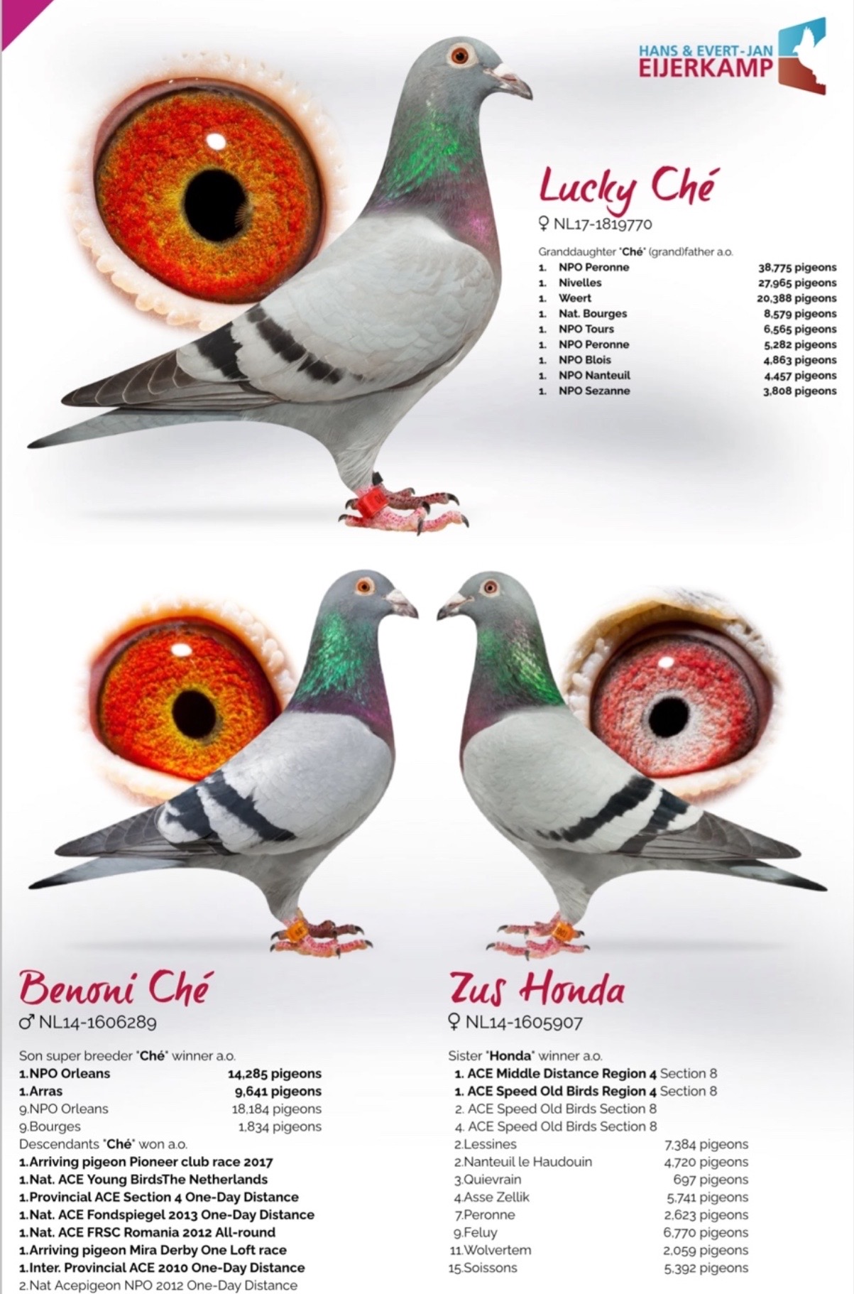 Both parents have consistently produced outstanding racing pigeons, with their progeny