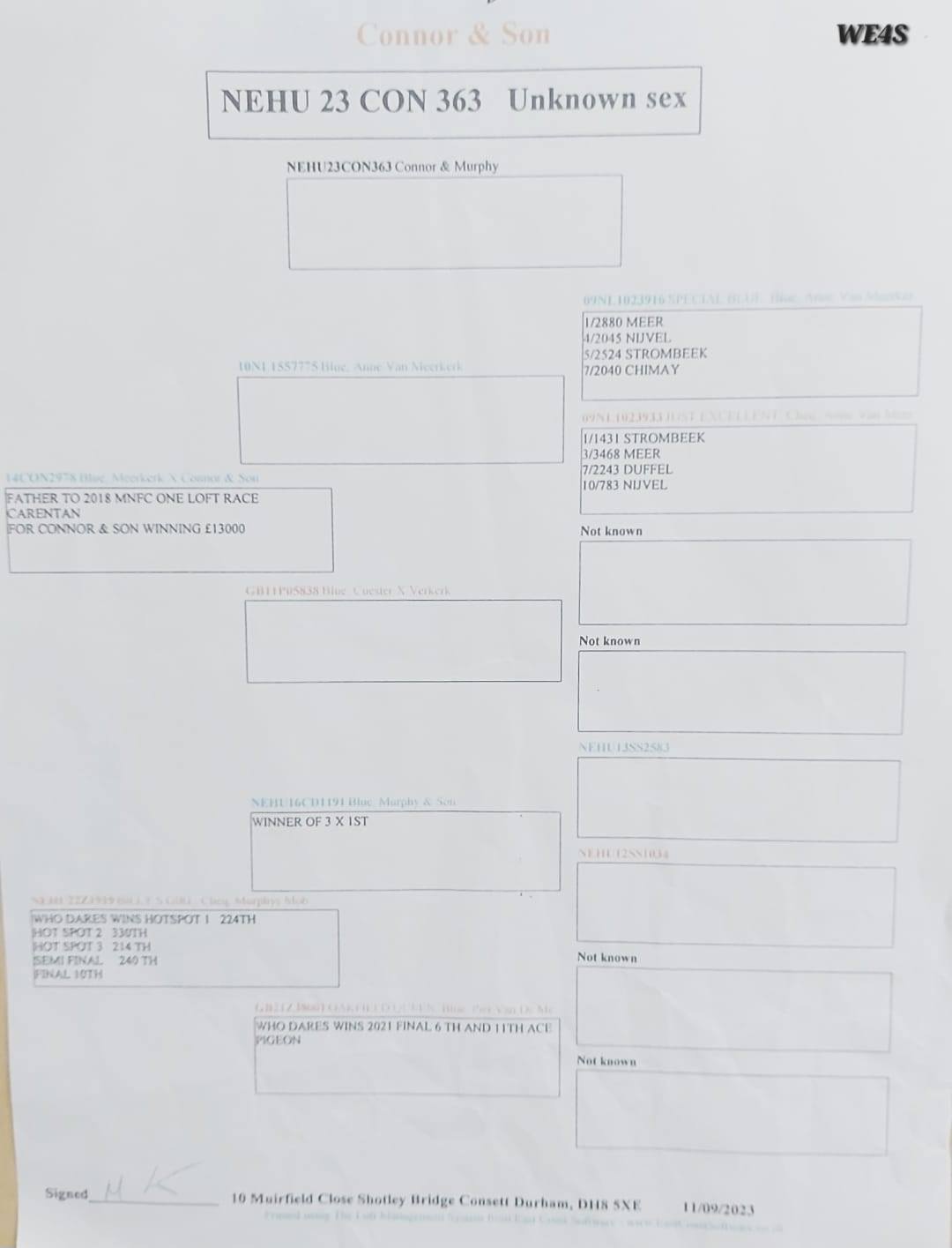 NEHU 23 CON 363 from Connor & Murphy. He is bred from a good pair of pigeons; his