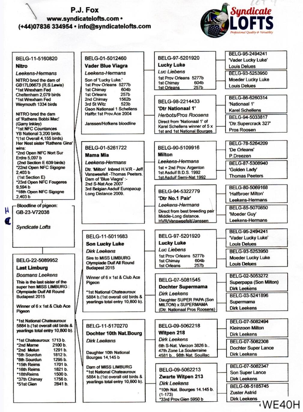 With world-renowned blood running through both sides, this pigeon is a top investment for anyone looking to strengthen their loft with true Syndicate quality — proven in competition, and bred down from generations of national and international champions.