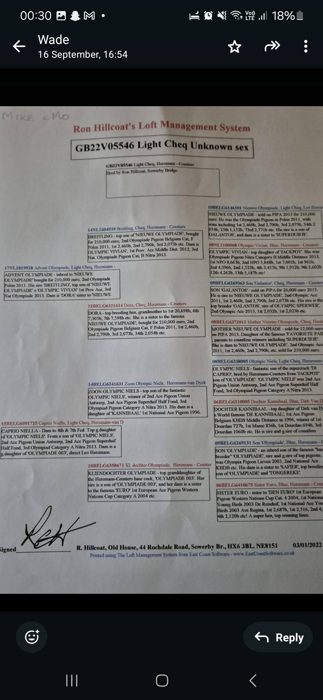 Also bred by Ron Hillcoat, and again packed with the very best of Olympiade, Dora, and Olympic Niels lines.
