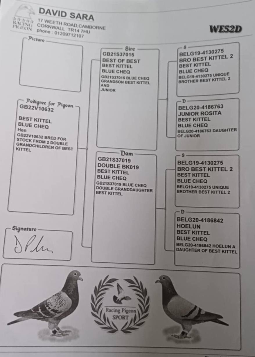 “Another strong performance from our 2025 team – this pigeon showed true racing character throughout the series. With its Bolt x Best Kittel pairing, it has all the makings of a future champion breeder.”