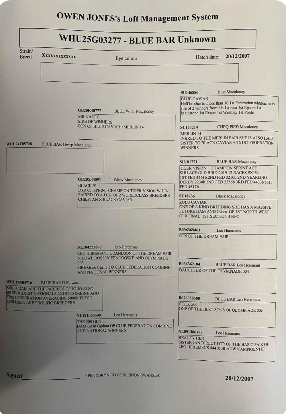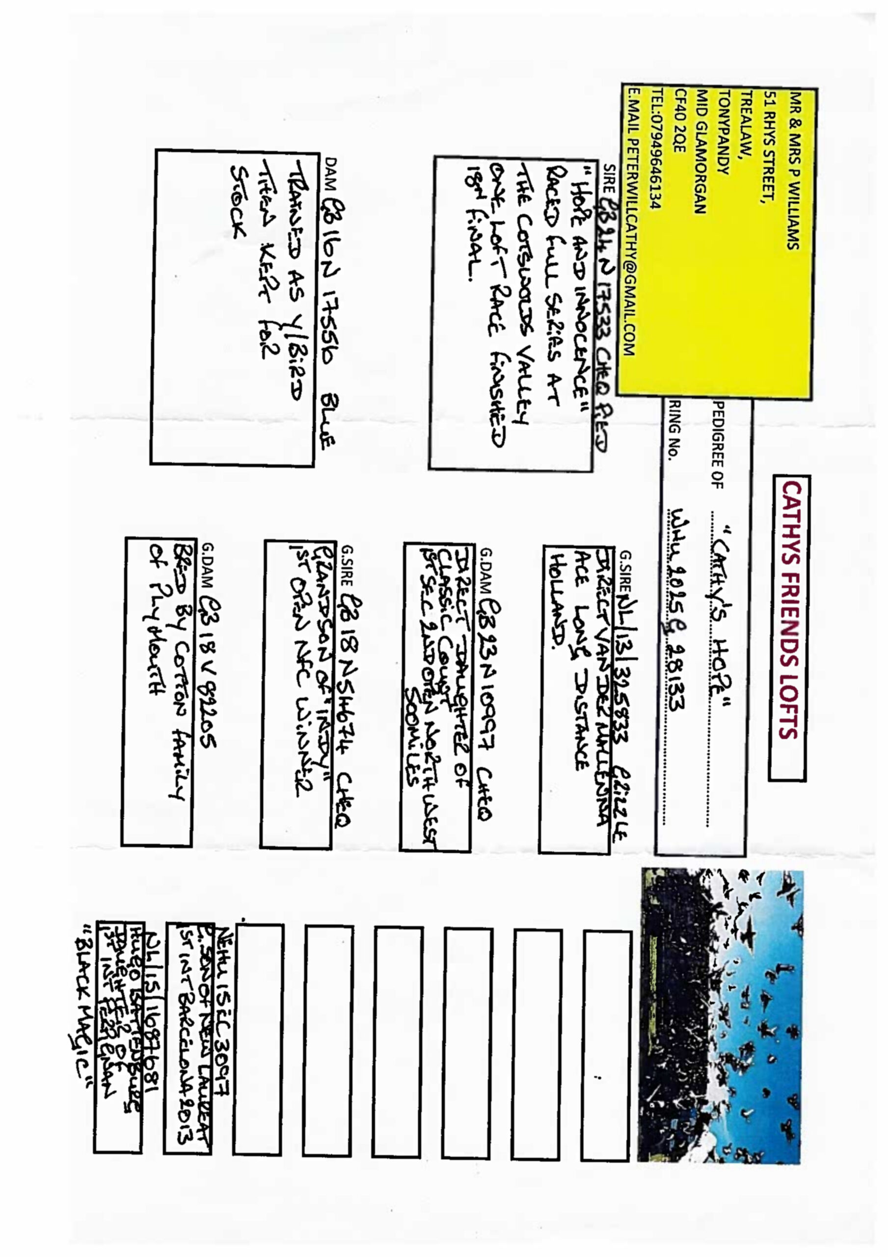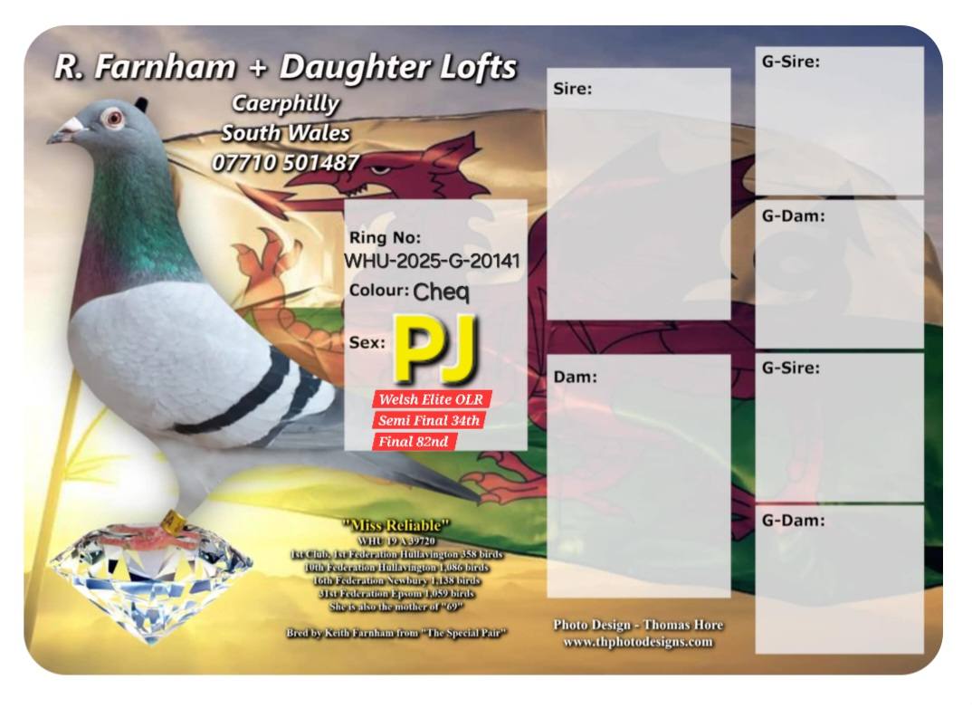 IHU-2025-5-005591Welsh Elite OLRCurrent bid: £50Highest bid: PIGEON7625Time left84Mr & Mrs Hickman