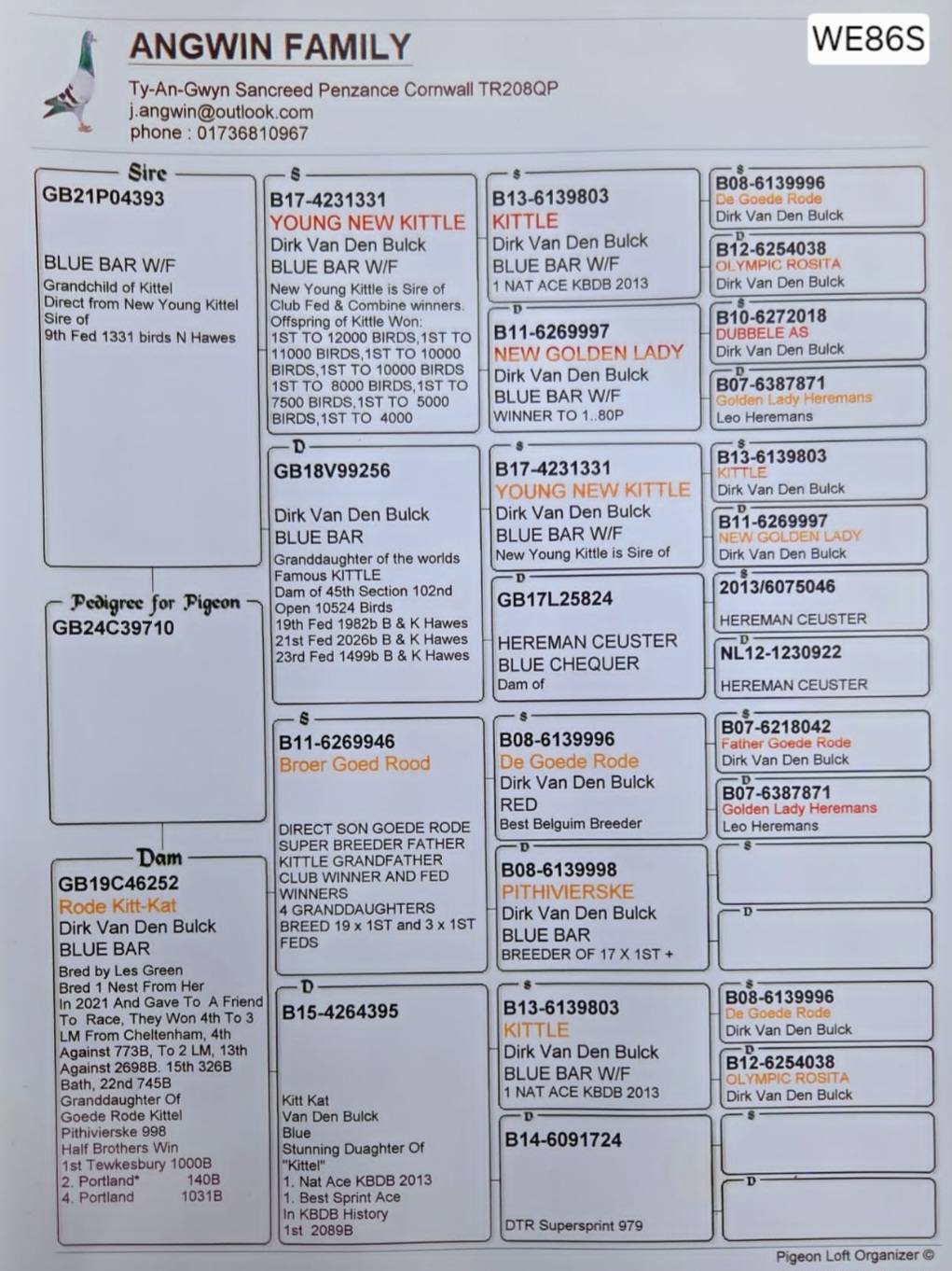 - Sire, grandsire & great-grandsire of multiple 1st prize winners up to 10,000 birds