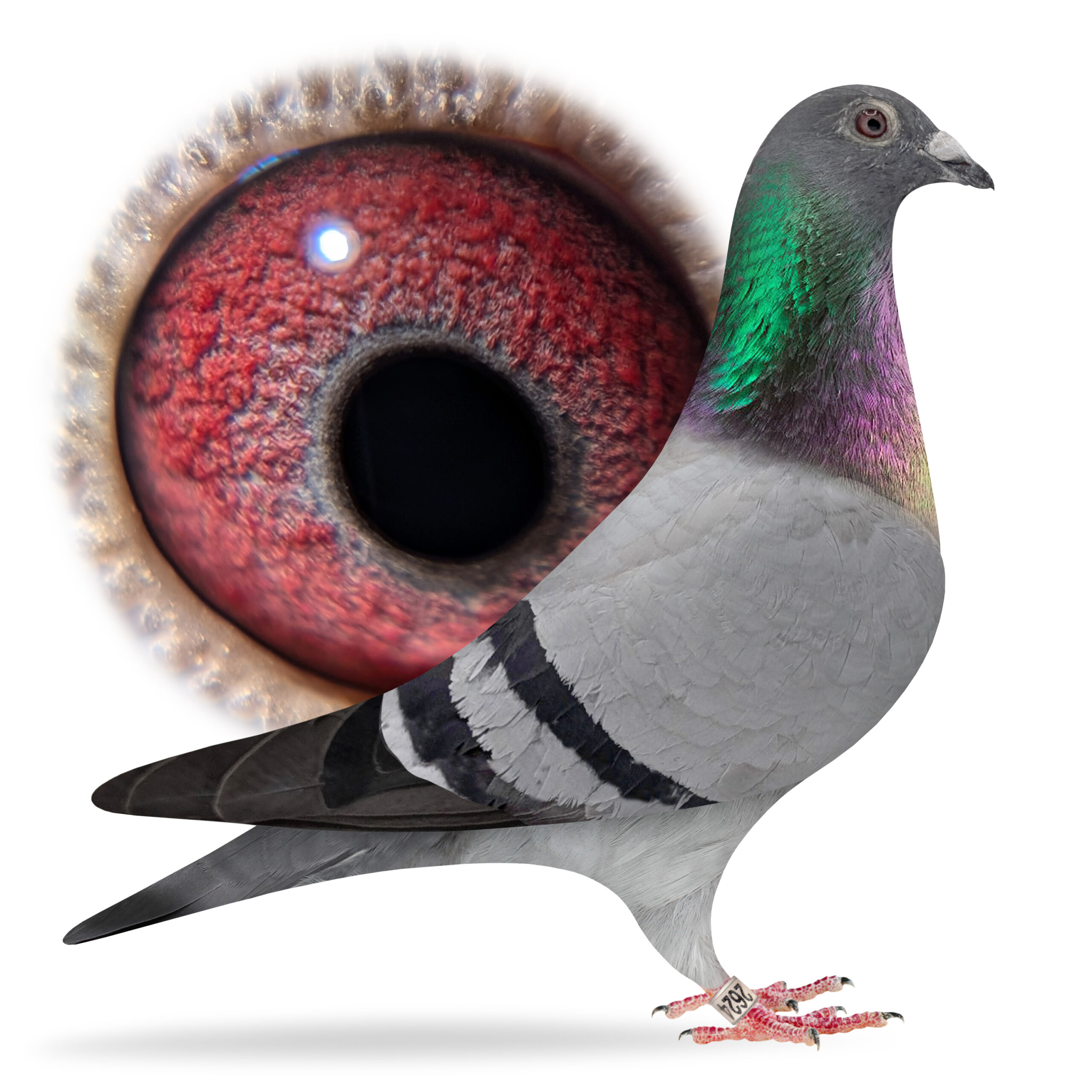 this young bird is bred in the purple — combining the incredible performance power of W.B. De Kruijf with the winning consistency of W.A. De Bruijn.A genetic cross of Route66,Olympic Girl, Hurricane, and Uranus, this is a pigeon built for top-level one loft racing and future breeding excellence.