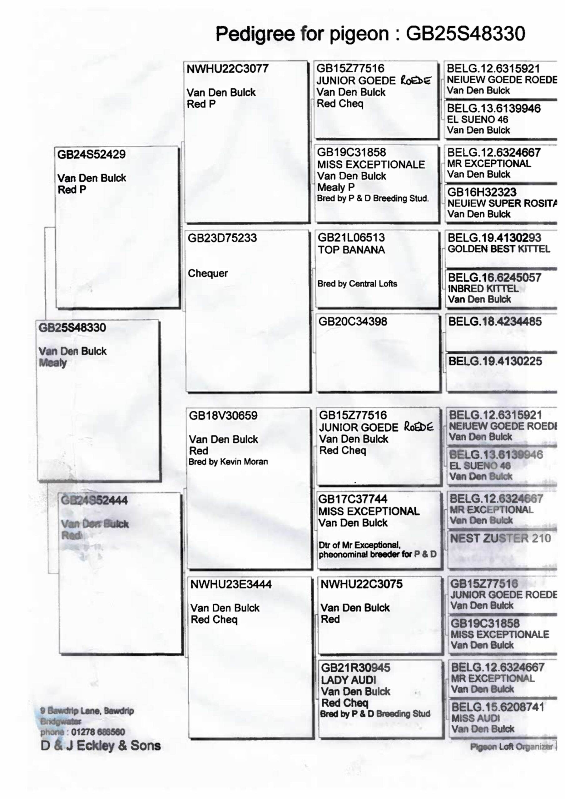- Dam: GB24S52444, bred down from Kevin Moran’s elite Van Den Bulck family, including the legendary “Mr Exceptional” and “Lady Audi”, responsible for multiple top National and Federation performers.